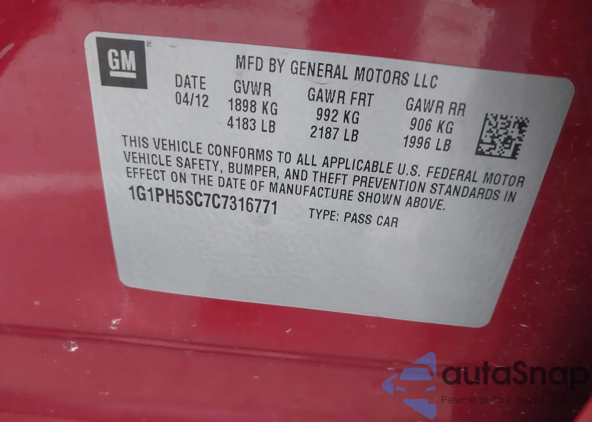 The car Chevrolet Cruze 2012 (VIN 1G1PH5SC7C7316771) has not been auctioned before. The documents are clean, and the mileage matches or is below the market average. Sold by an insurance company – we recommend purchase. Delivery to the port will take approx. 6–8 weeks.
