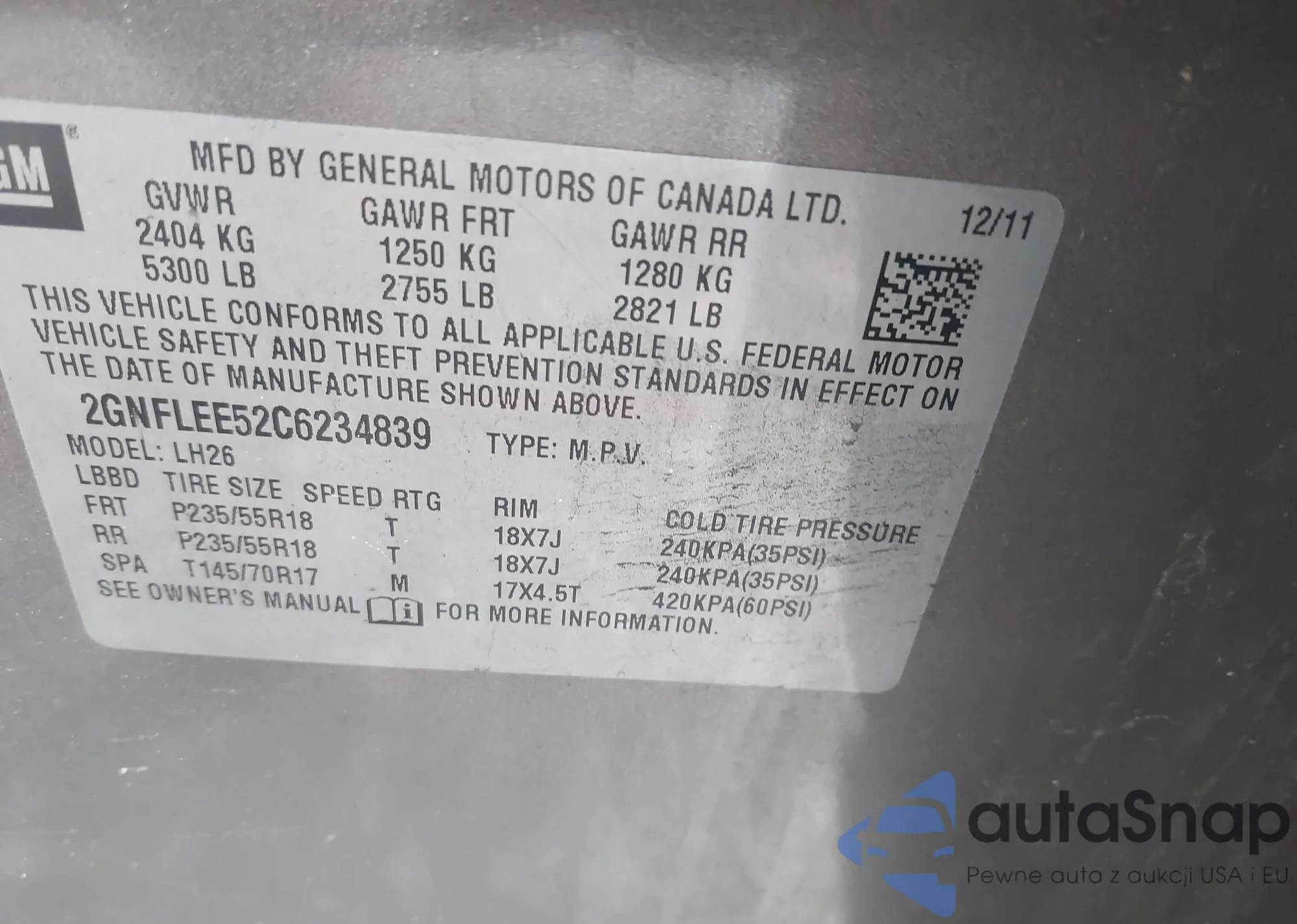 VIN: 2GNFLEE52C6234839