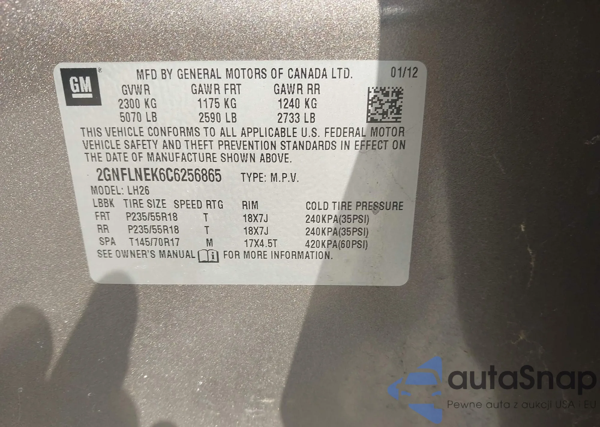 VIN: 2GNFLNEK6C6256865