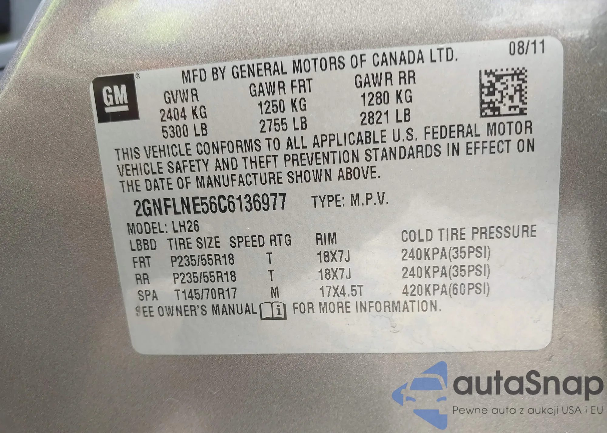 VIN: 2GNFLNE56C6136977