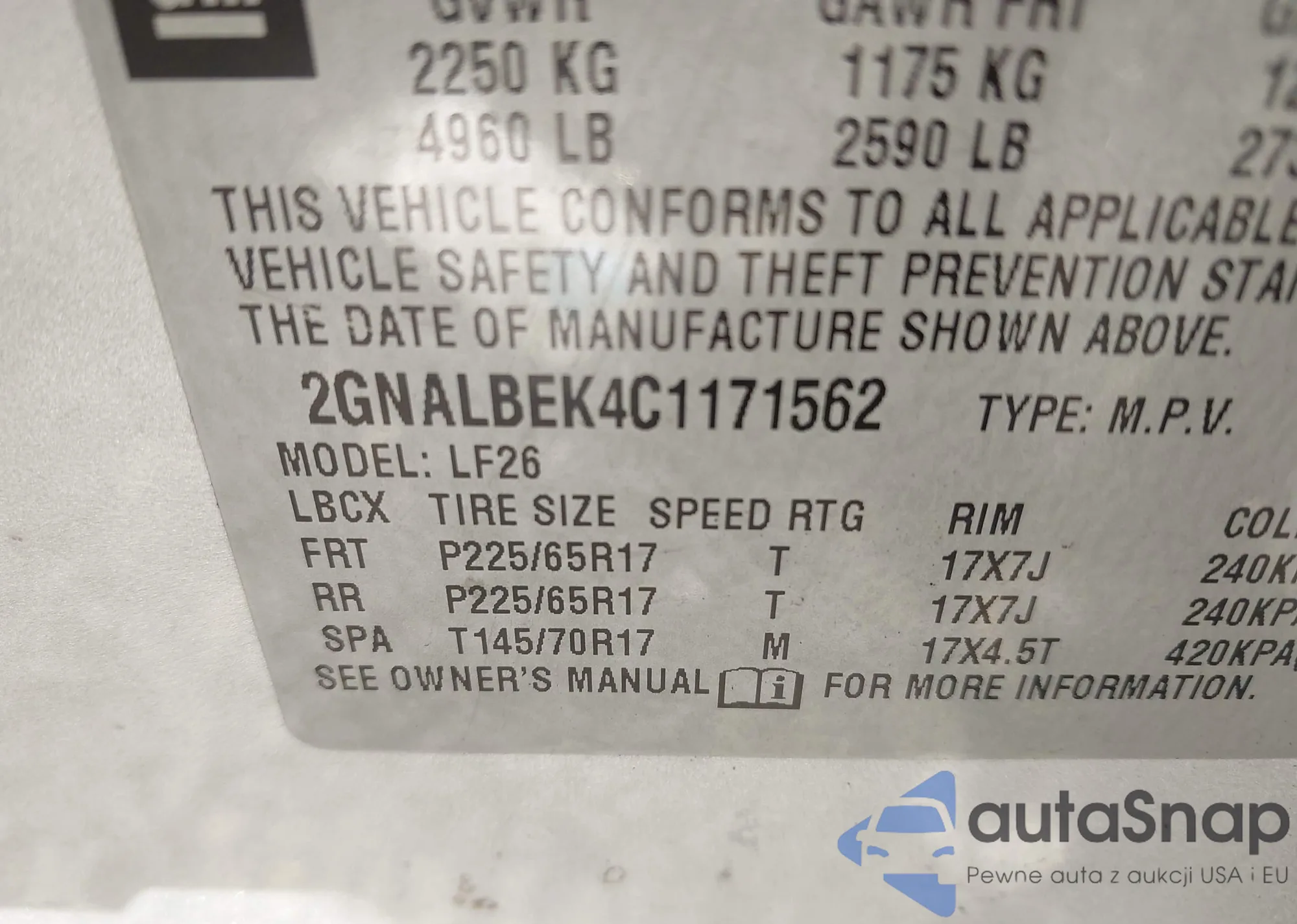 VIN: 2GNALBEK4C1171562