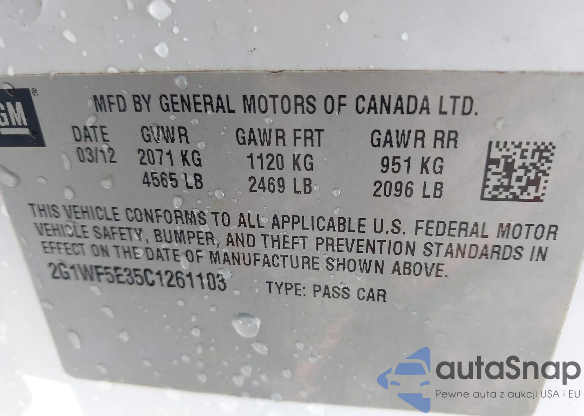 • VIN: 2G1WF5E35C1261103