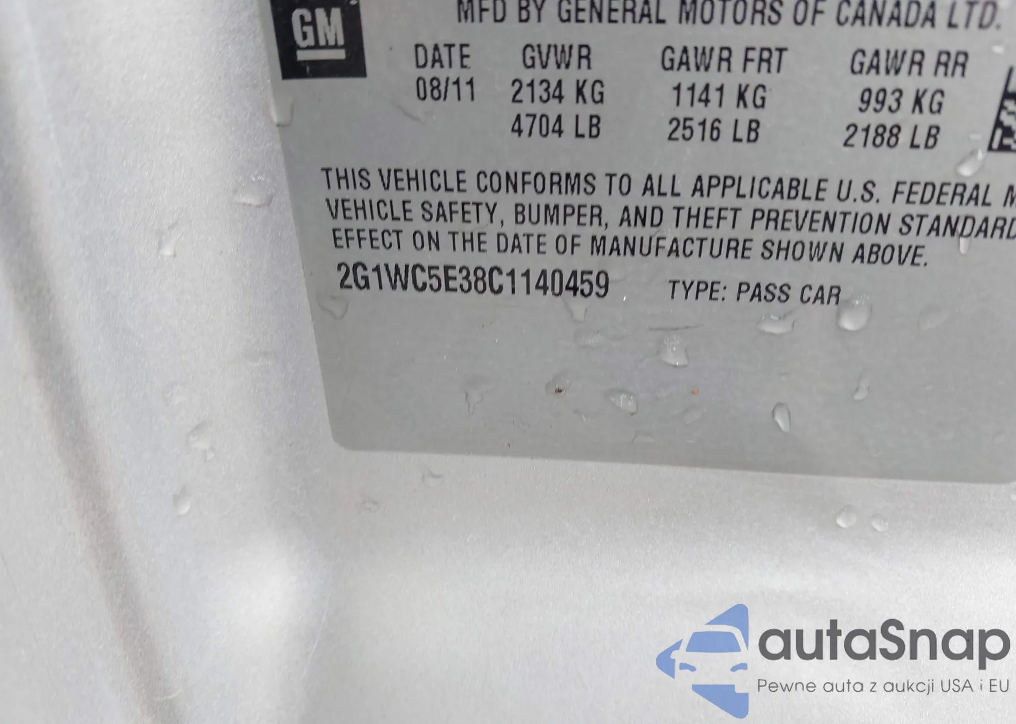 VIN: 2G1WC5E38C1140459