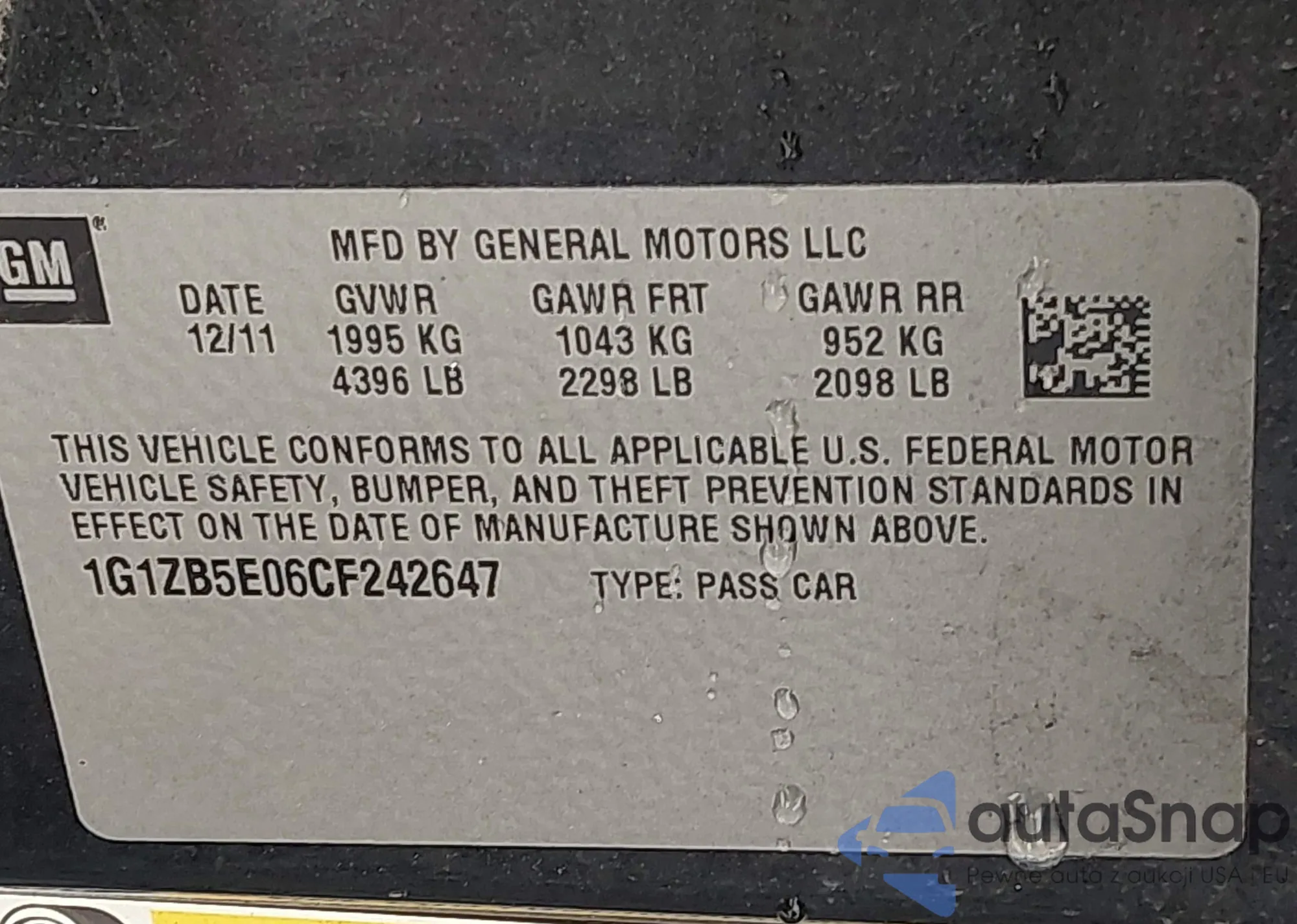 • VIN: 1G1ZB5E06CF242647