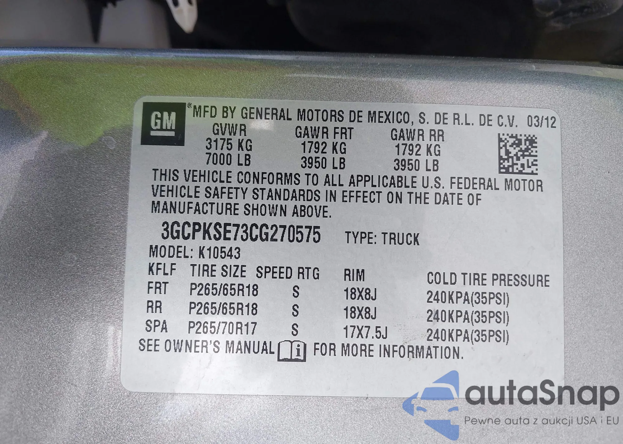 The car Chevrolet Silverado 2012 (VIN 3GCPKSE73CG270575) has not been auctioned before. The documents are clean, and the mileage matches or is below the market average. Sold by an insurance company – we recommend purchase. Delivery to the port will take approx. 6–8 weeks.