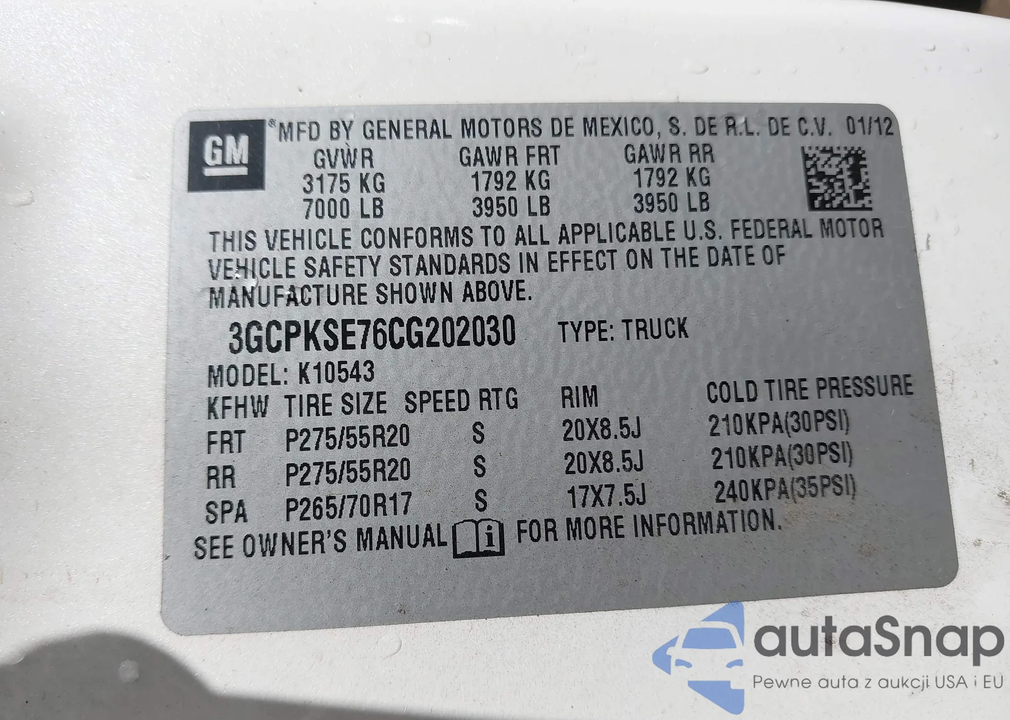 VIN: 3GCPKSE76CG202030