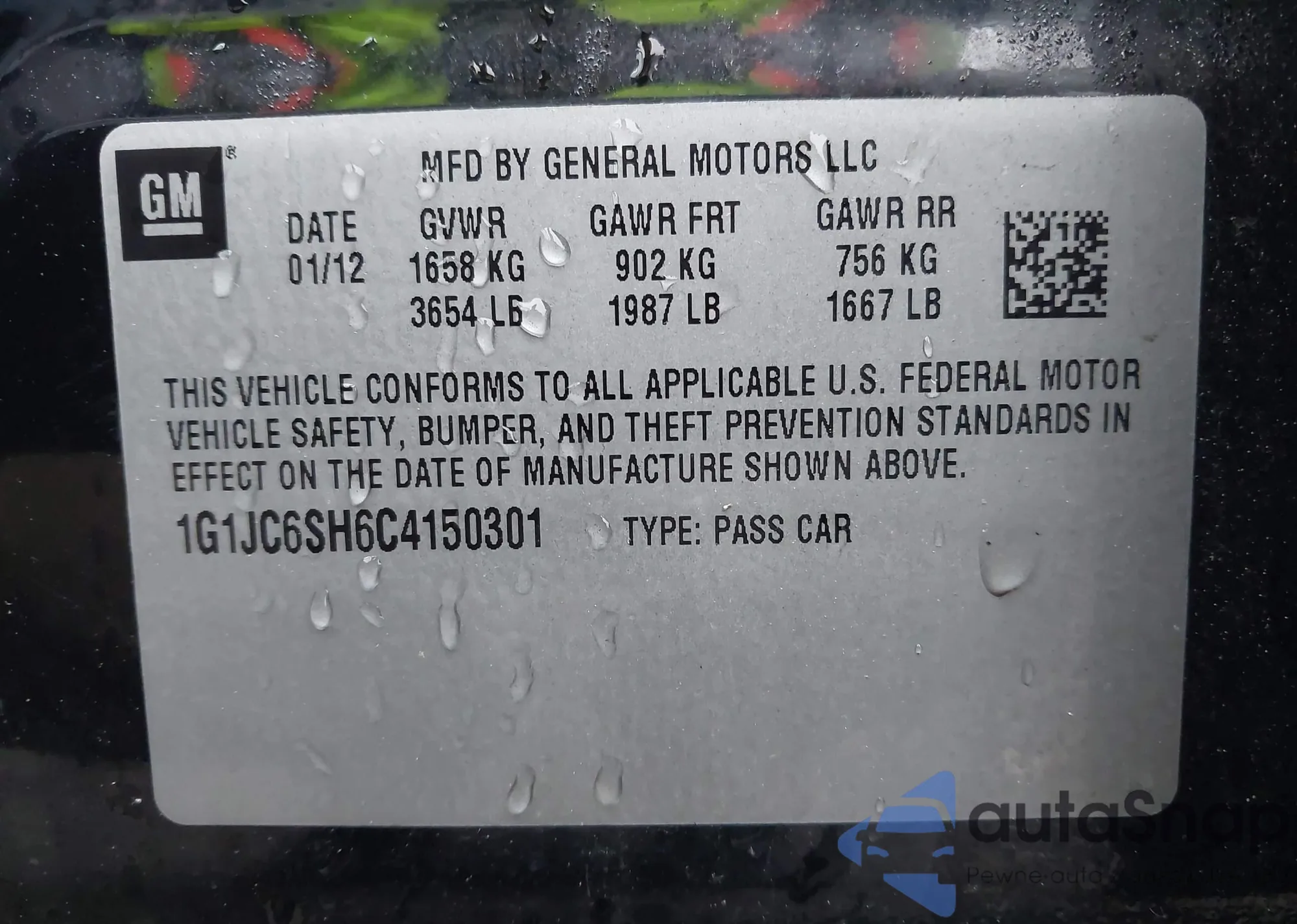 The car Chevrolet Sonic 2012 (VIN 1G1JC6SH6C4150301) is sold by an unverified seller. We recommend checking the Carfax report and confirming registration possibilities before purchase.