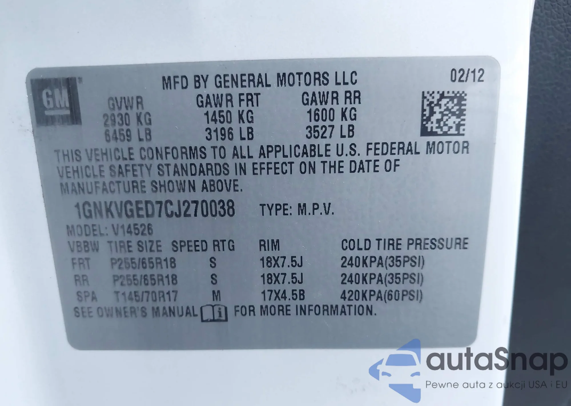 VIN: 1GNKVGED7CJ270038