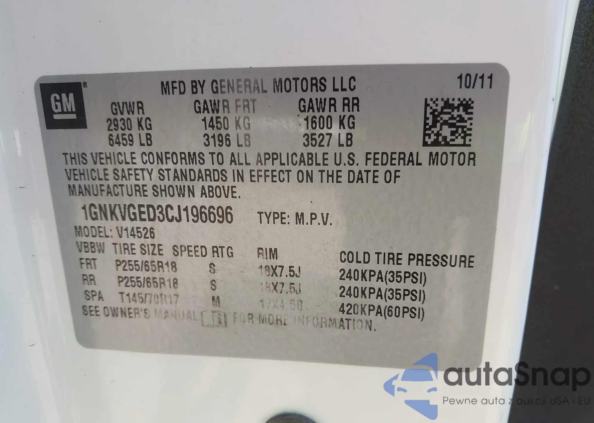VIN: 1GNKVGED3CJ196696