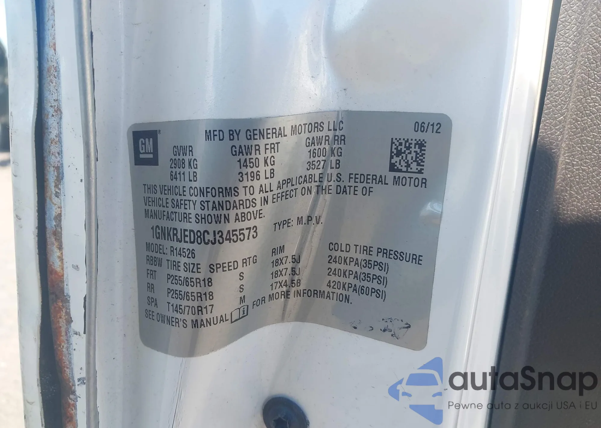VIN: 1GNKRJED8CJ345573