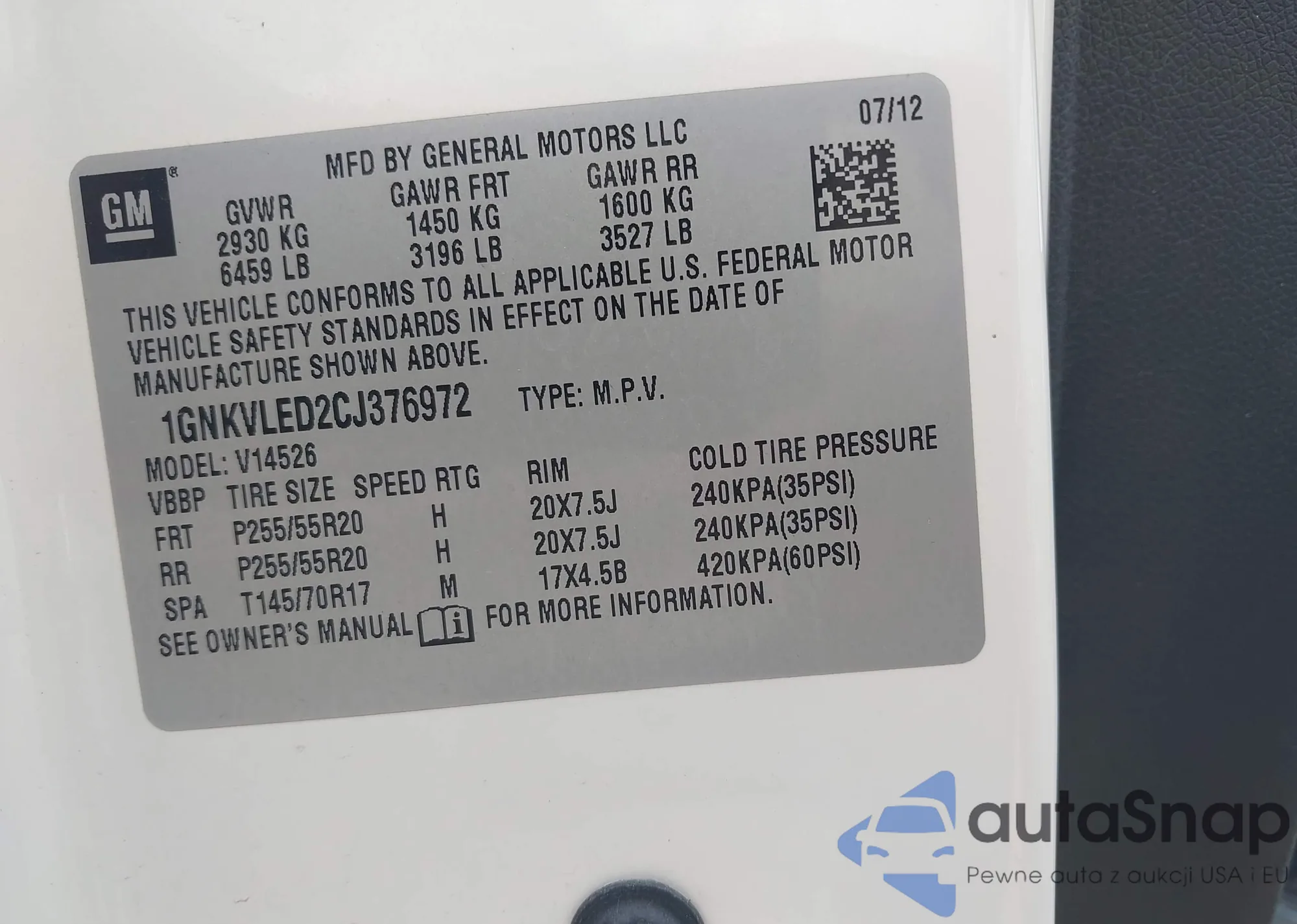 VIN: 1GNKVLED2CJ376972