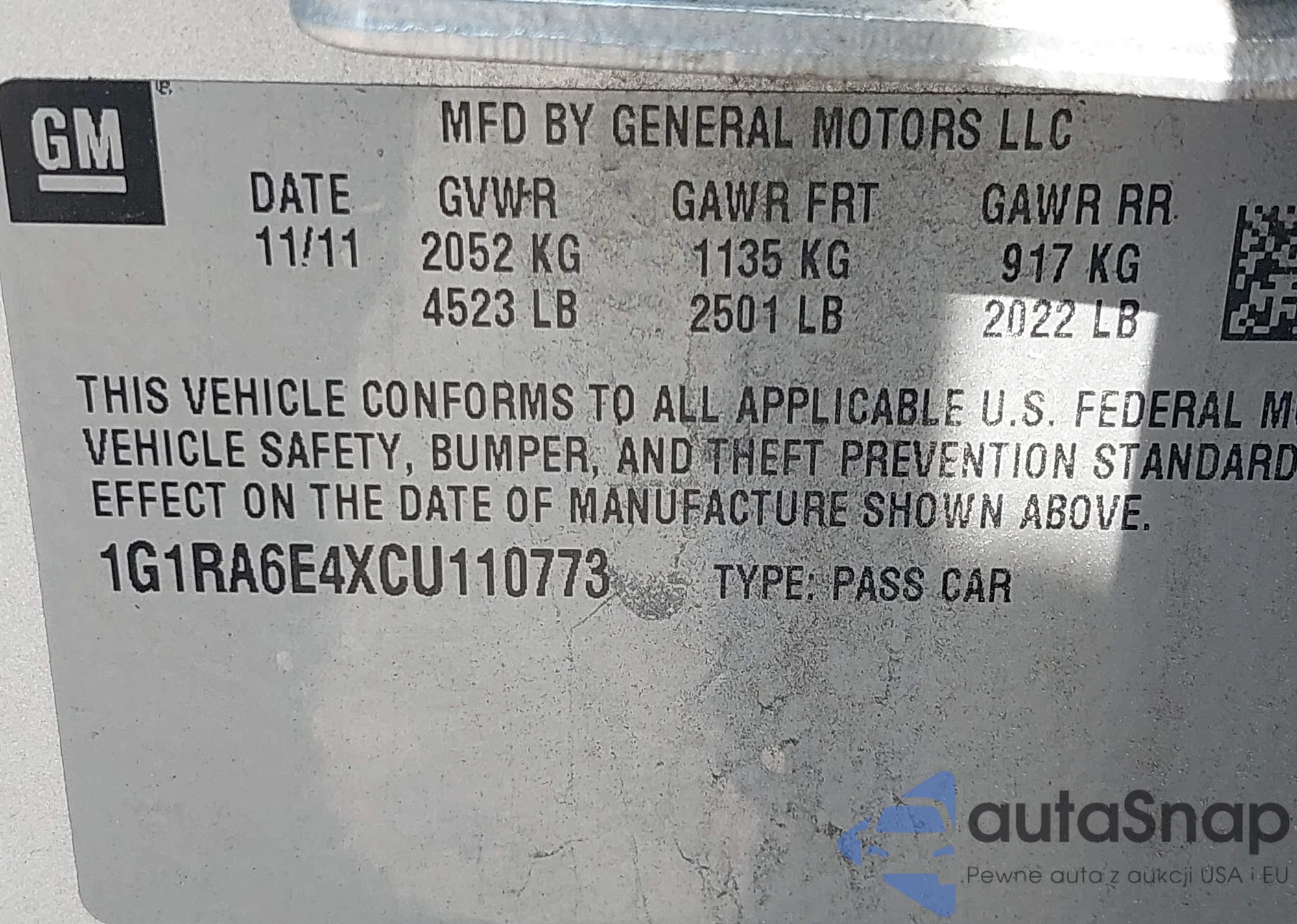 VIN: 1G1RA6E4XCU110773