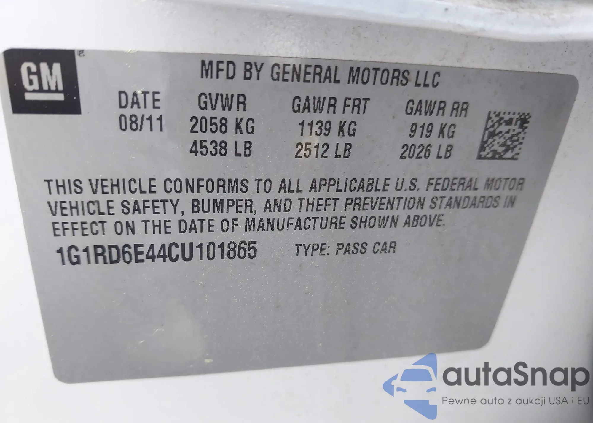 VIN: 1G1RD6E44CU101865