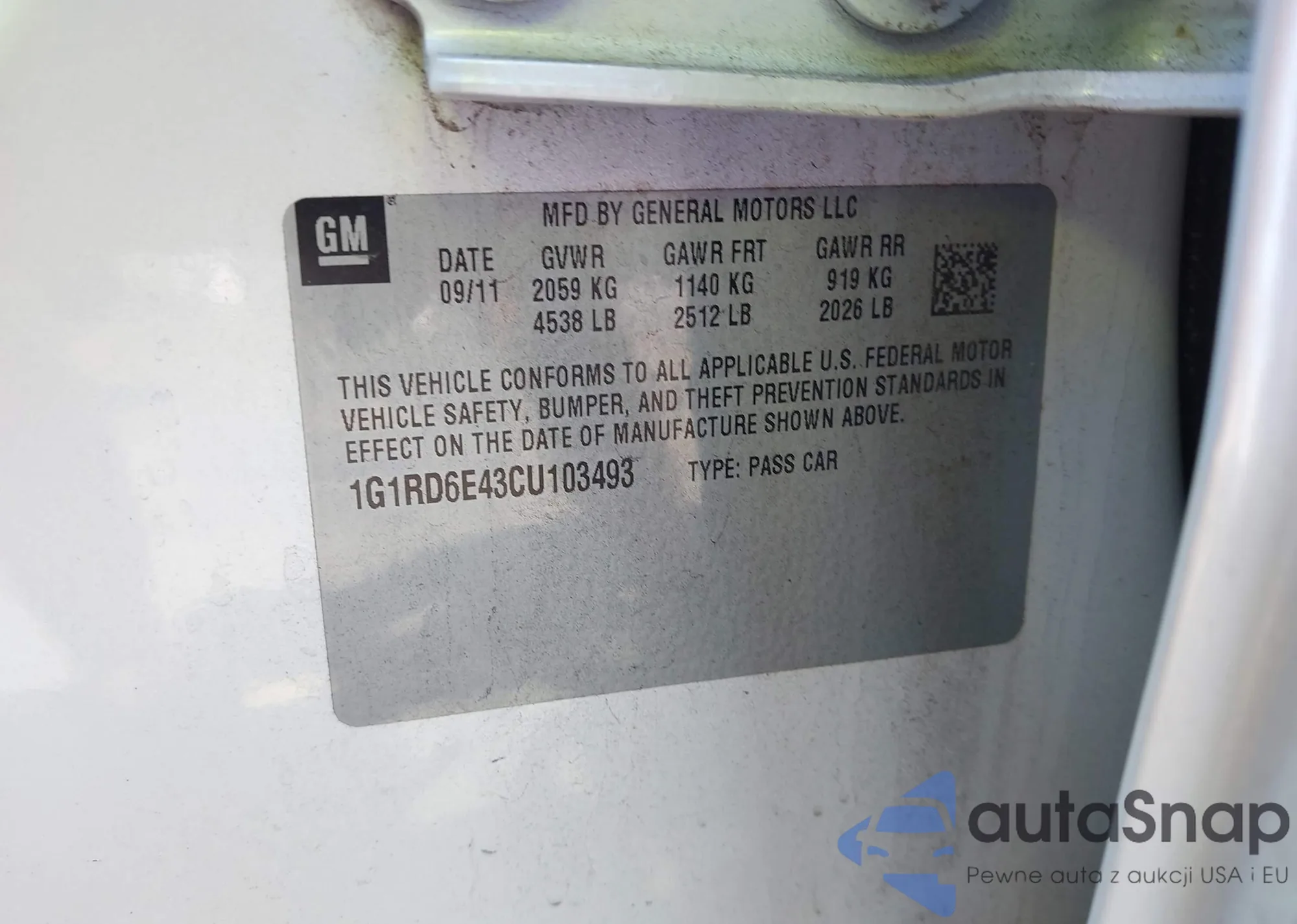 VIN: 1G1RD6E43CU103493