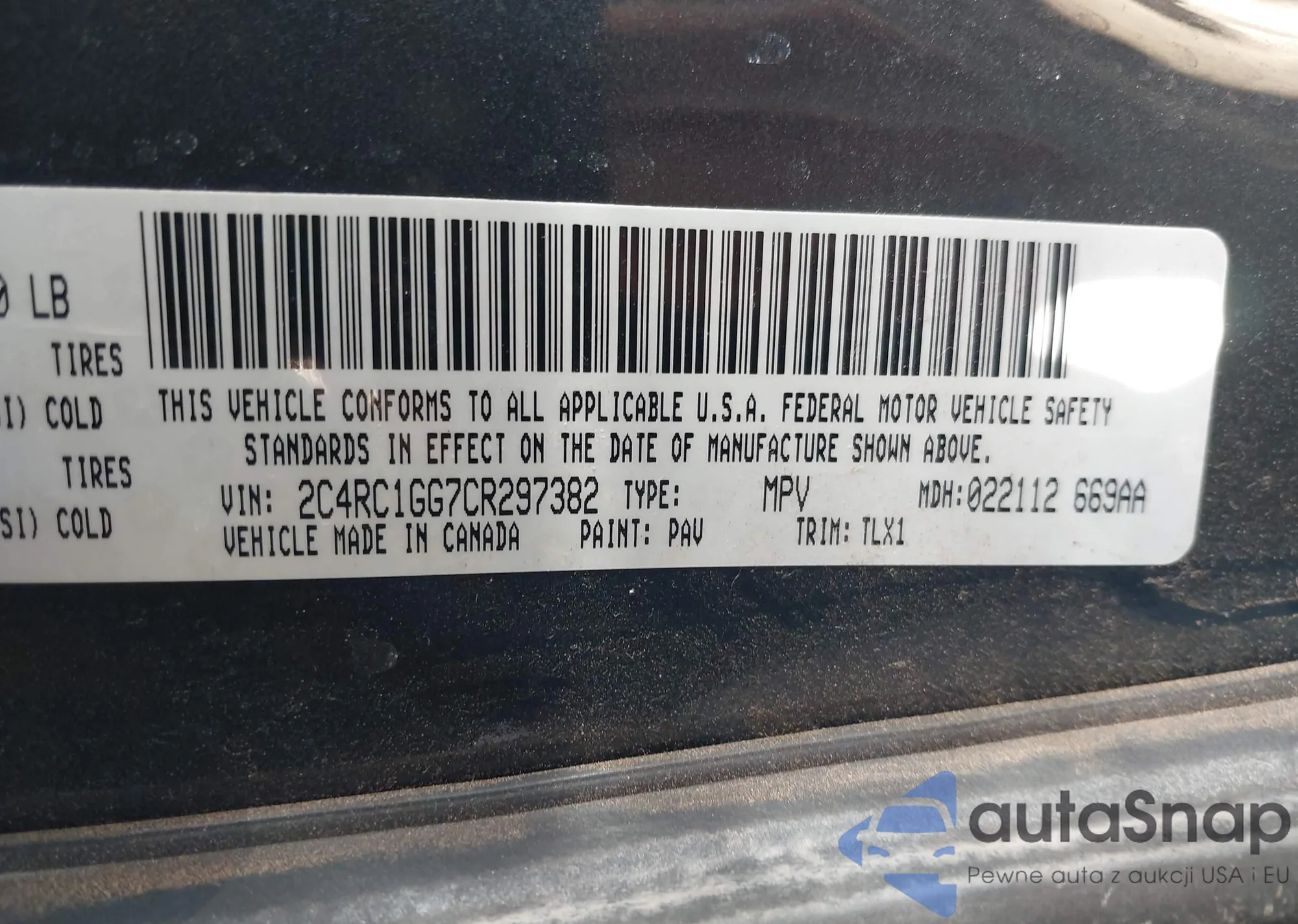 • VIN: 2C4RC1GG7CR297382