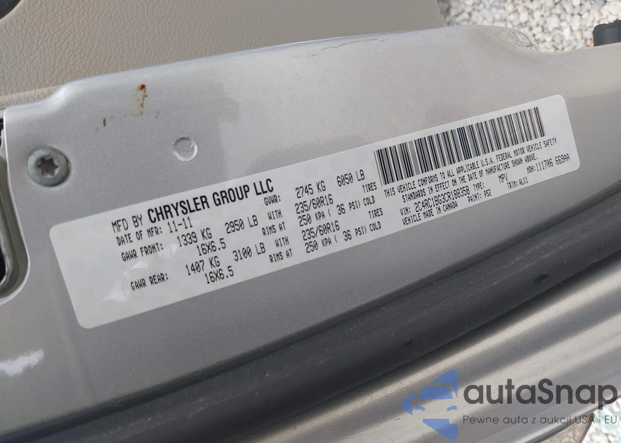 VIN: 2C4RC1BG3CR188358