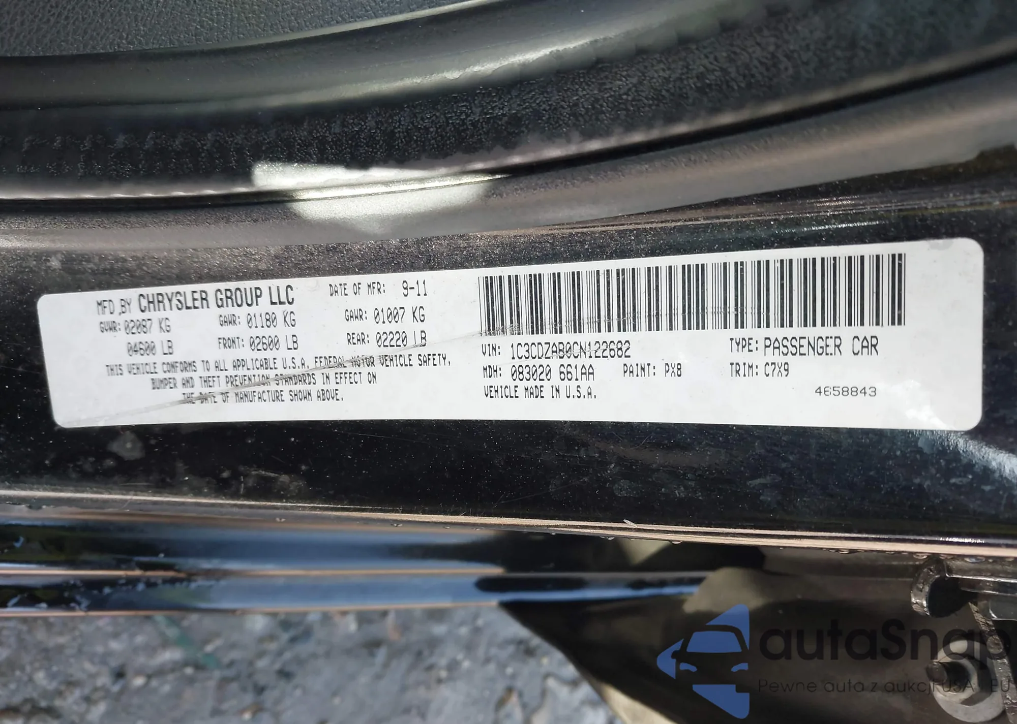 • VIN: 1C3CDZAB0CN122682