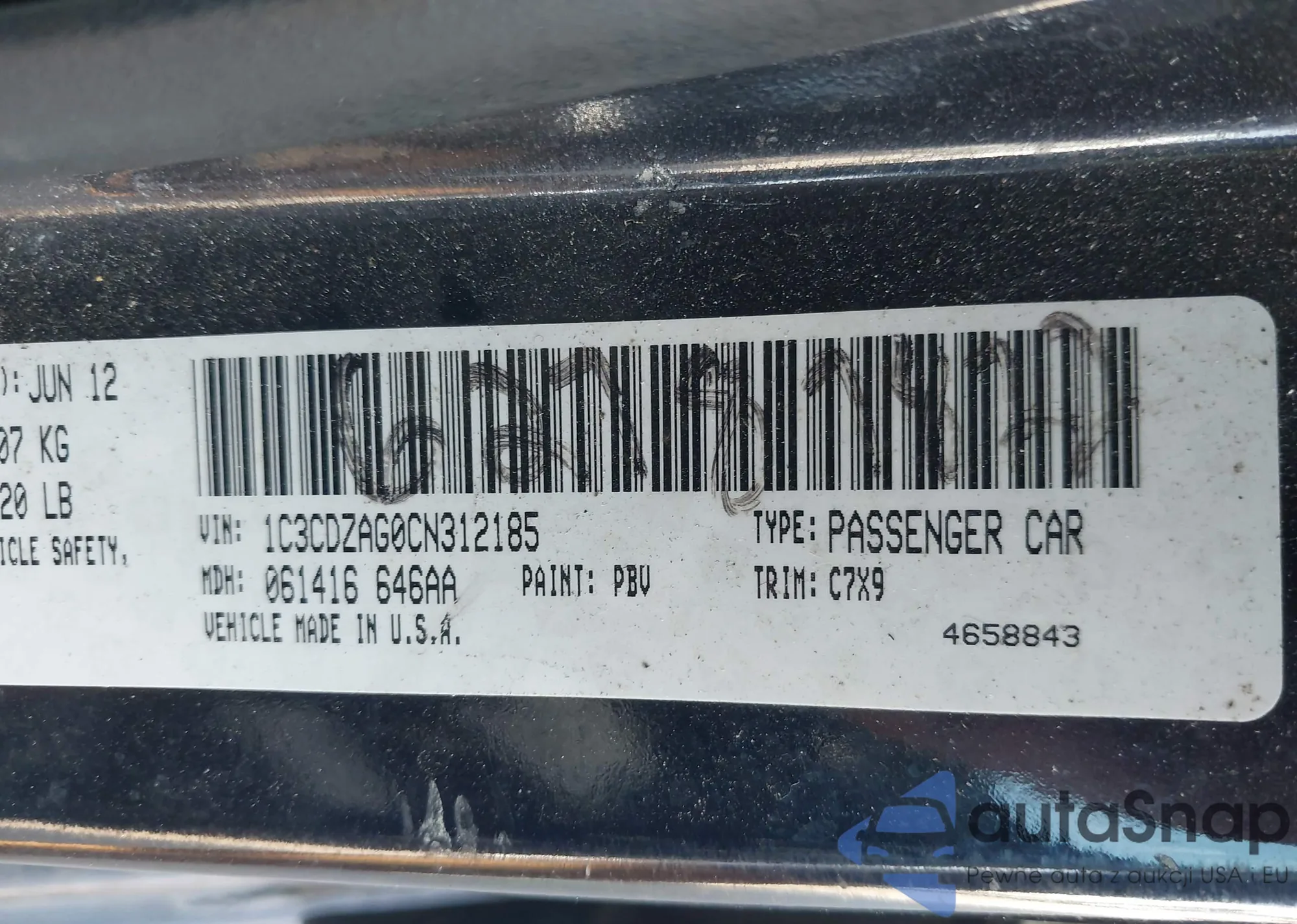 VIN: 1C3CDZAG0CN312185