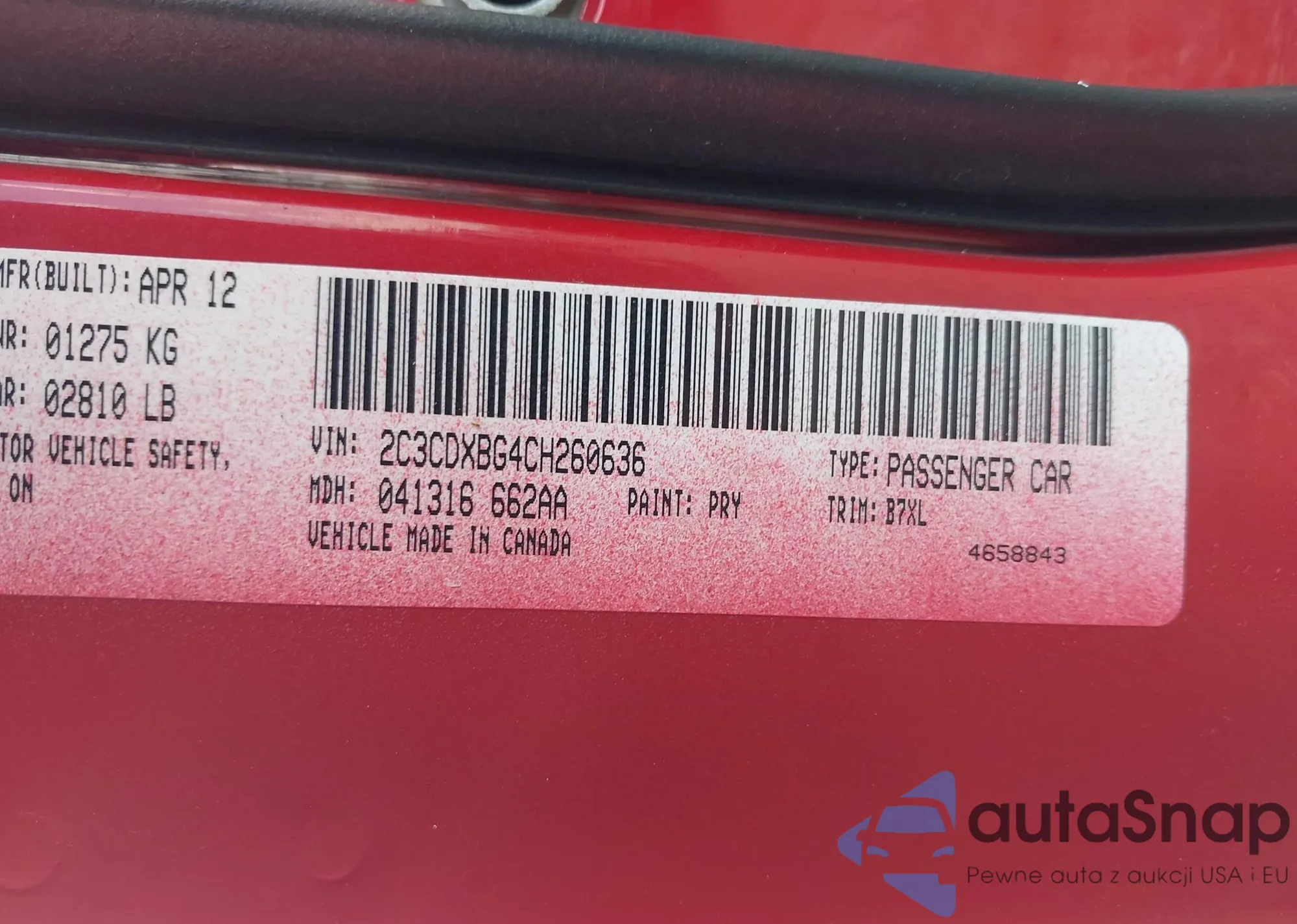 VIN: 2C3CDXBG4CH260636