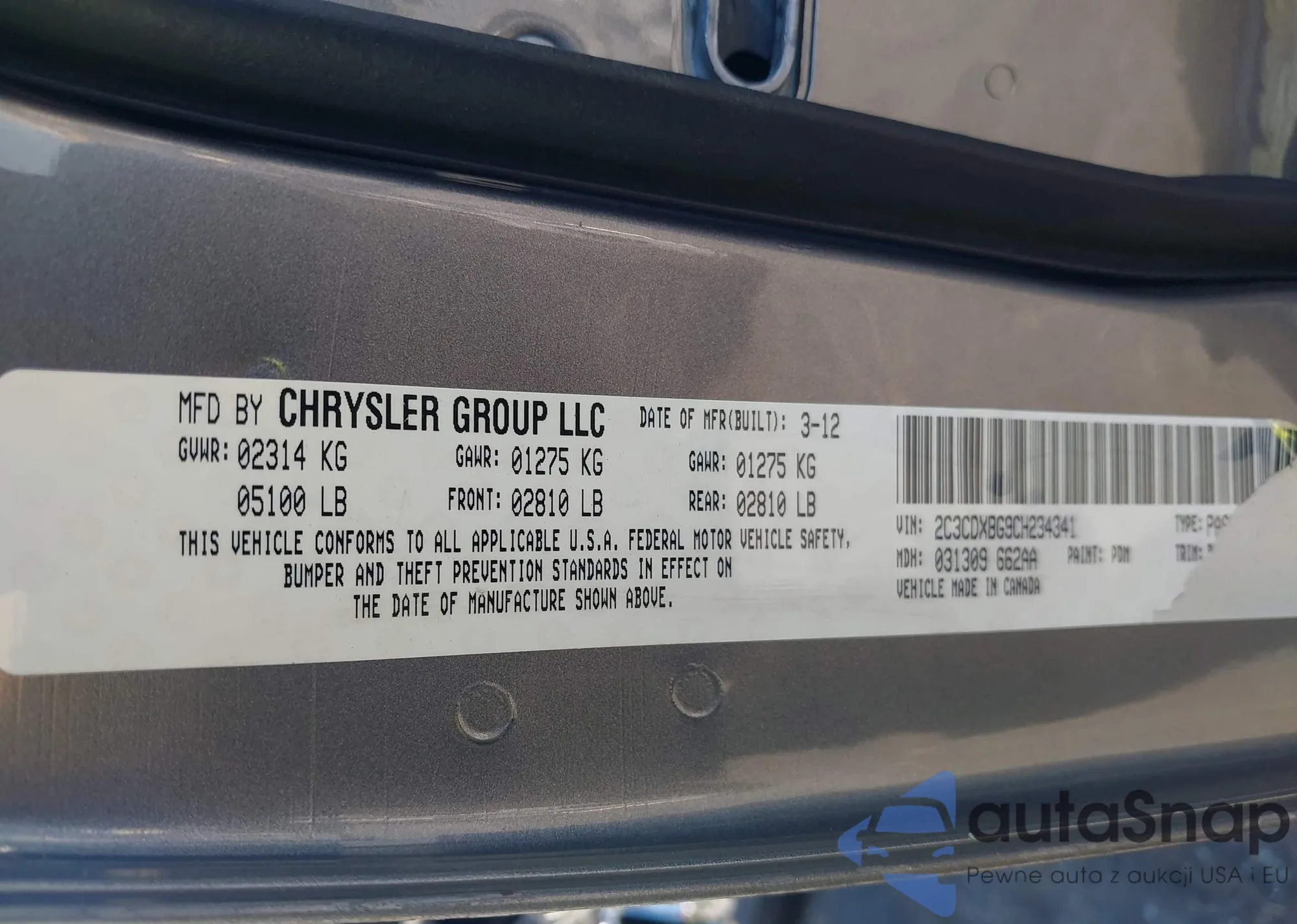 • VIN: 2C3CDXBG9CH234341