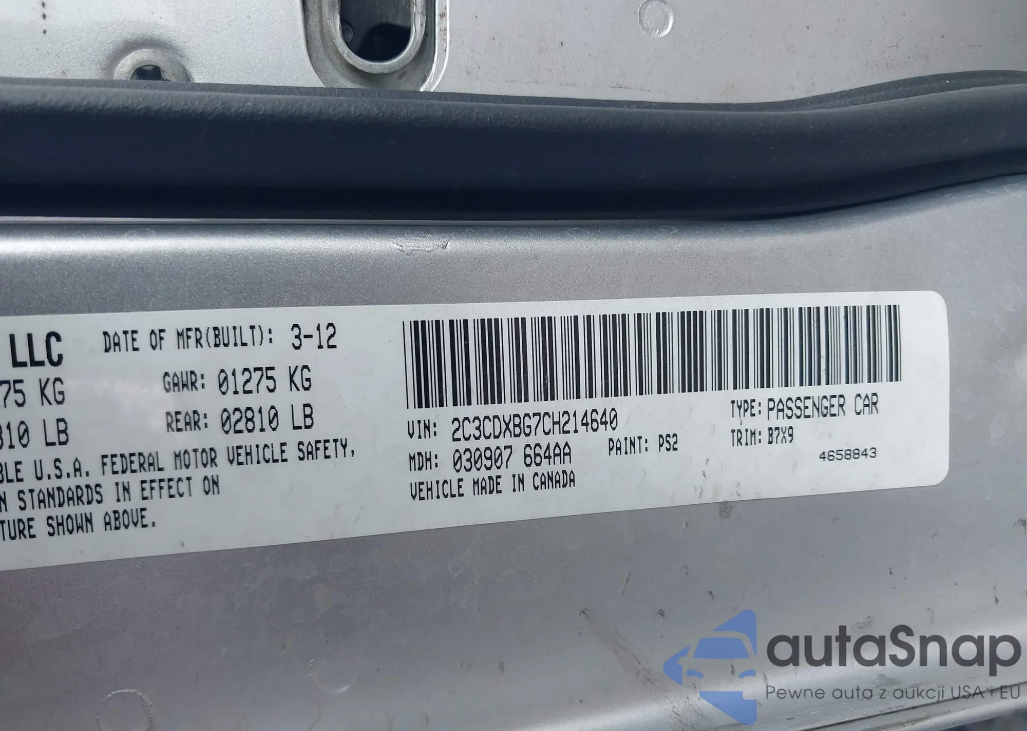 VIN: 2C3CDXBG7CH214640