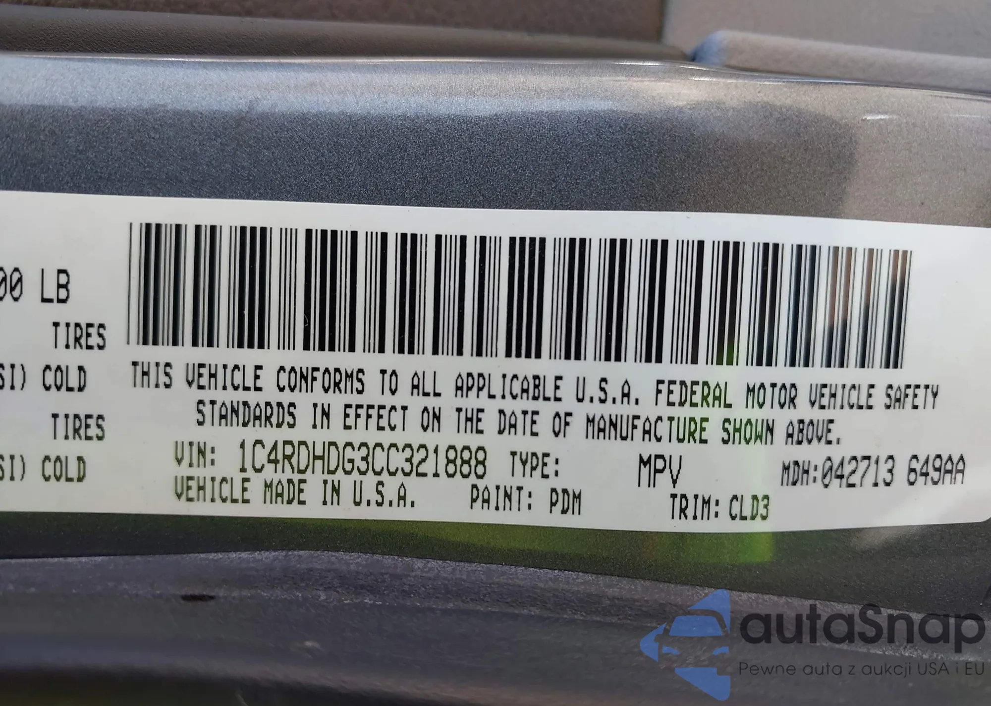 VIN: 1C4RDHDG3CC321888