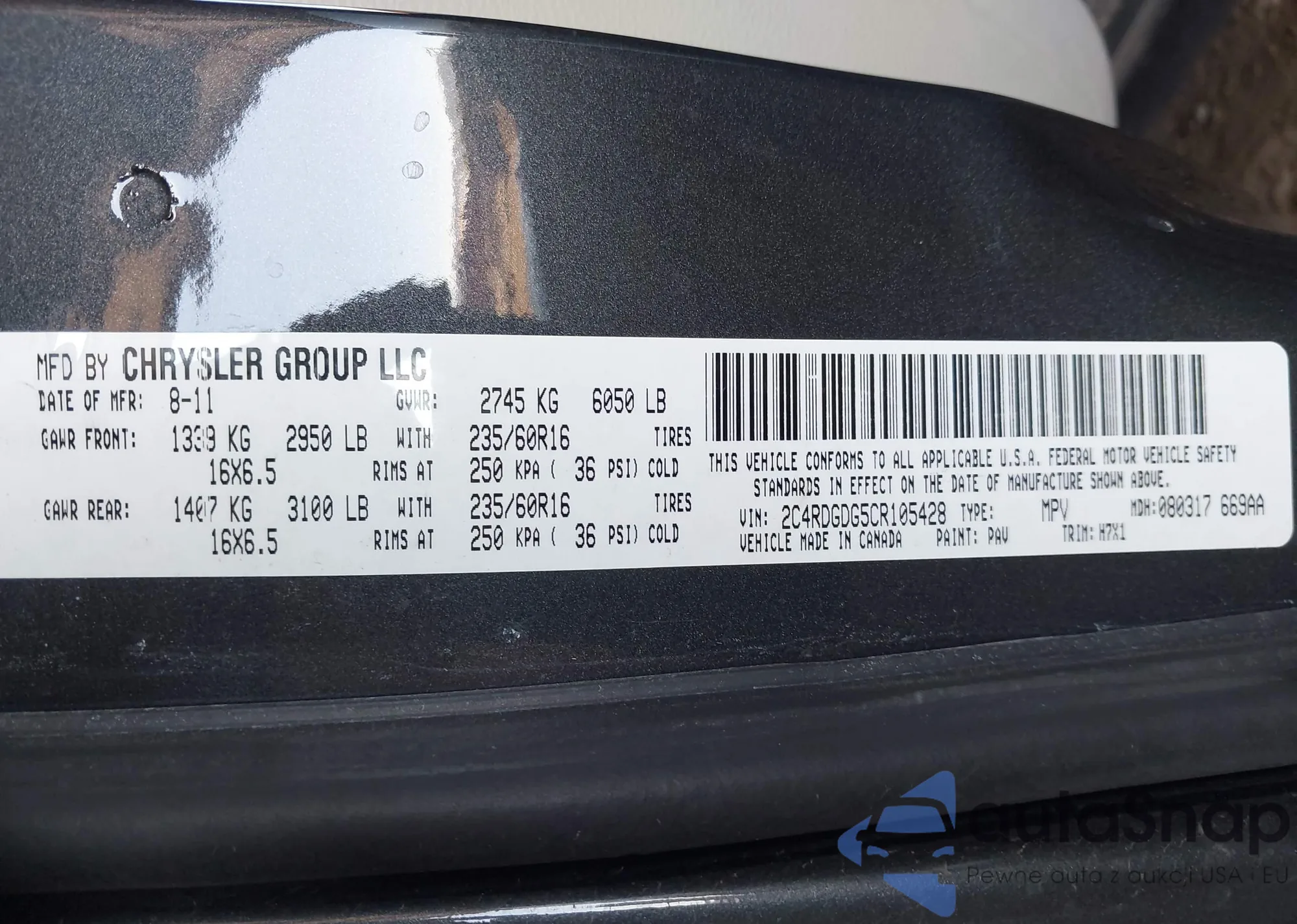 VIN: 2C4RDGDG5CR105428