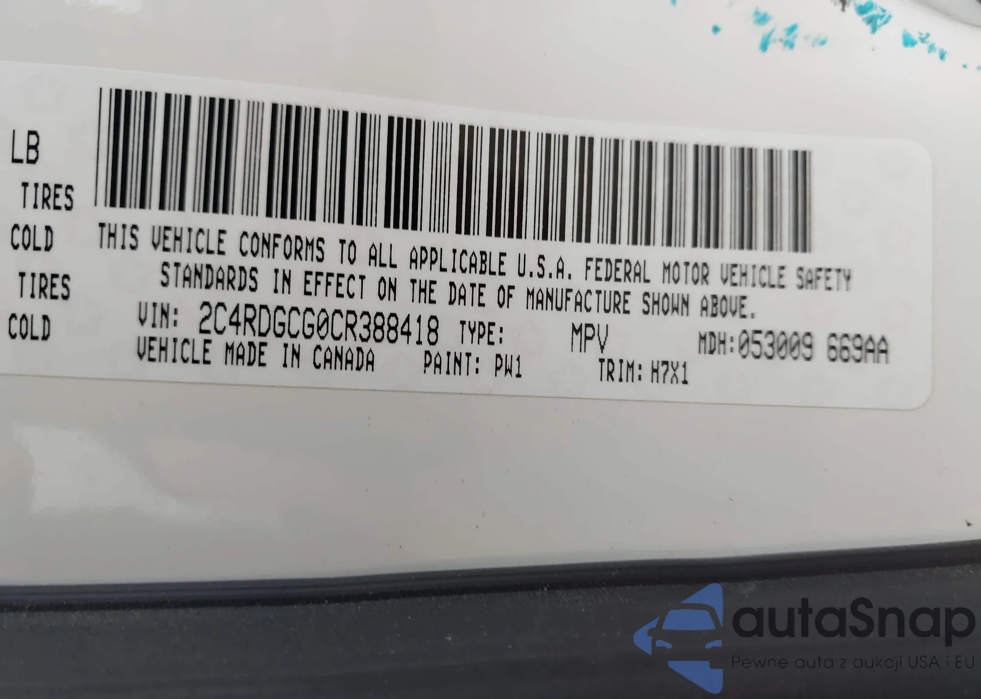 VIN: 2C4RDGCG0CR388418