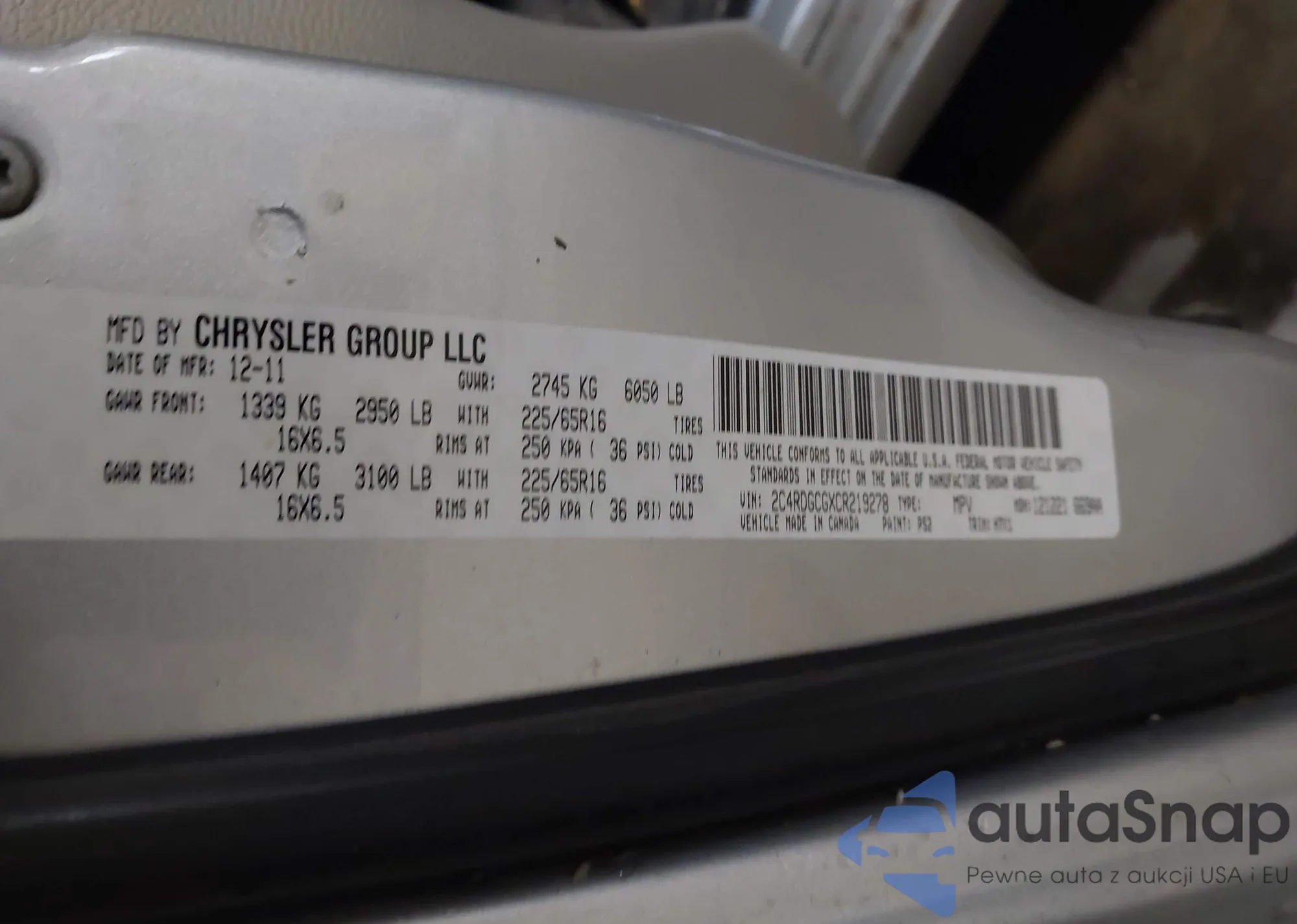 VIN: 2C4RDGCGXCR219278