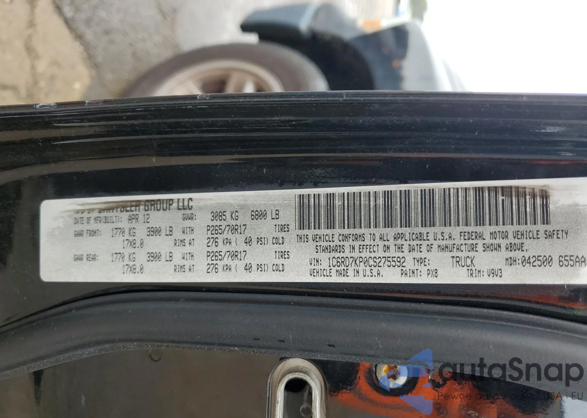 VIN: 1C6RD7KP0CS275592