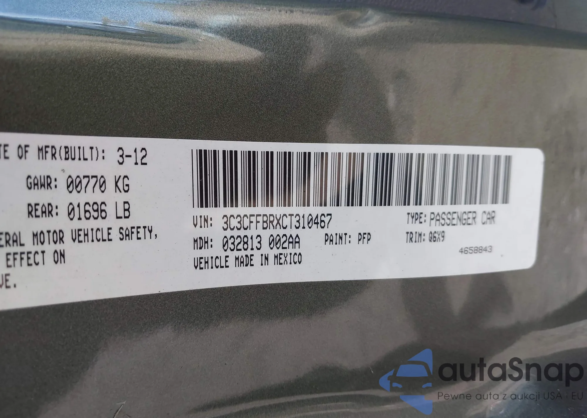 The car Fiat 500 2012 (VIN 3C3CFFBRXCT310467) has already been auctioned 0 times or is sold by an unverified seller. We recommend checking the Carfax report and confirming registration possibilities before purchase.