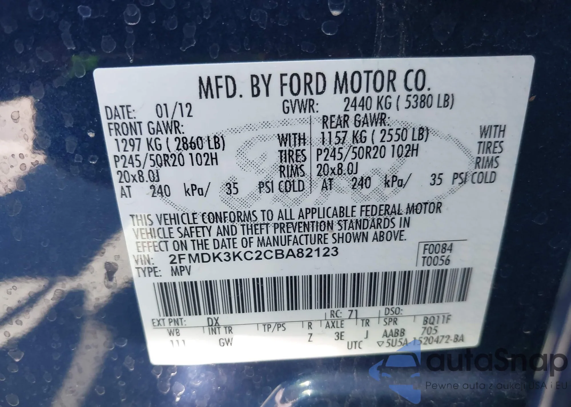 VIN: 2FMDK3KC2CBA82123