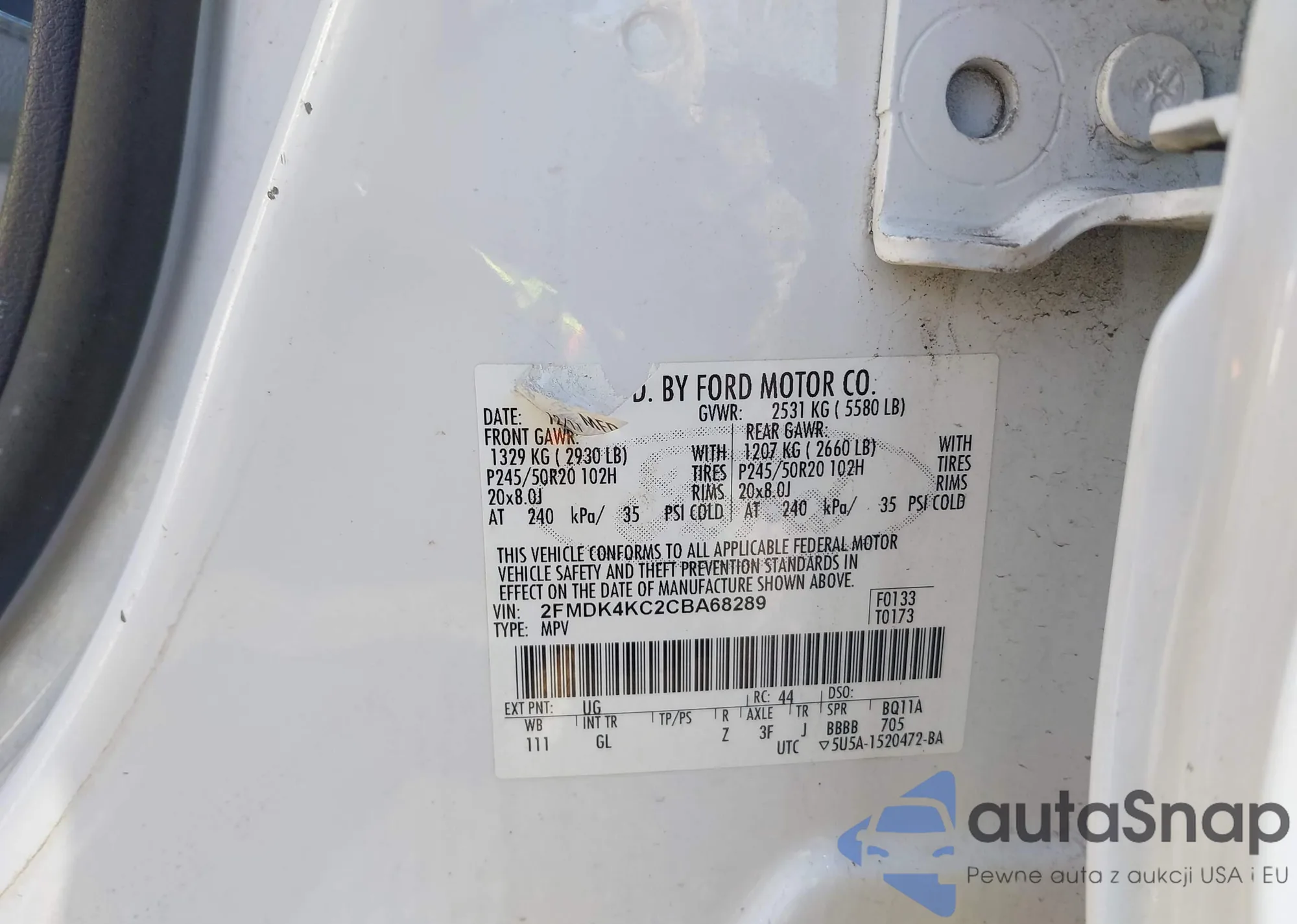 The car Ford Edge 2012 (VIN 2FMDK4KC2CBA68289) has not been auctioned before. The documents are clean, and the mileage matches or is below the market average. Sold by an insurance company – we recommend purchase. Delivery to the port will take approx. 6–8 weeks.
