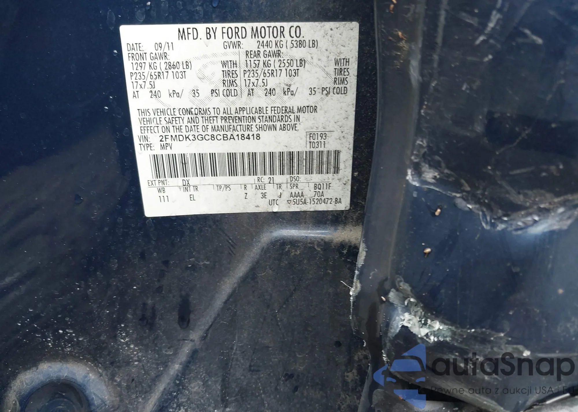 VIN: 2FMDK3GC8CBA18418