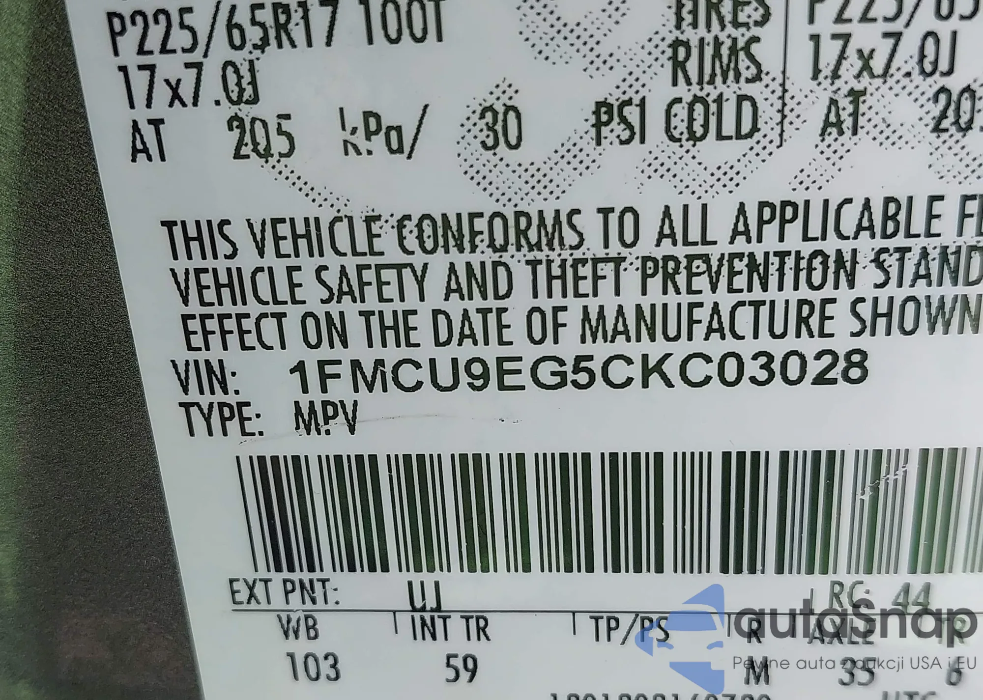 VIN: 1FMCU9EG5CKC03028