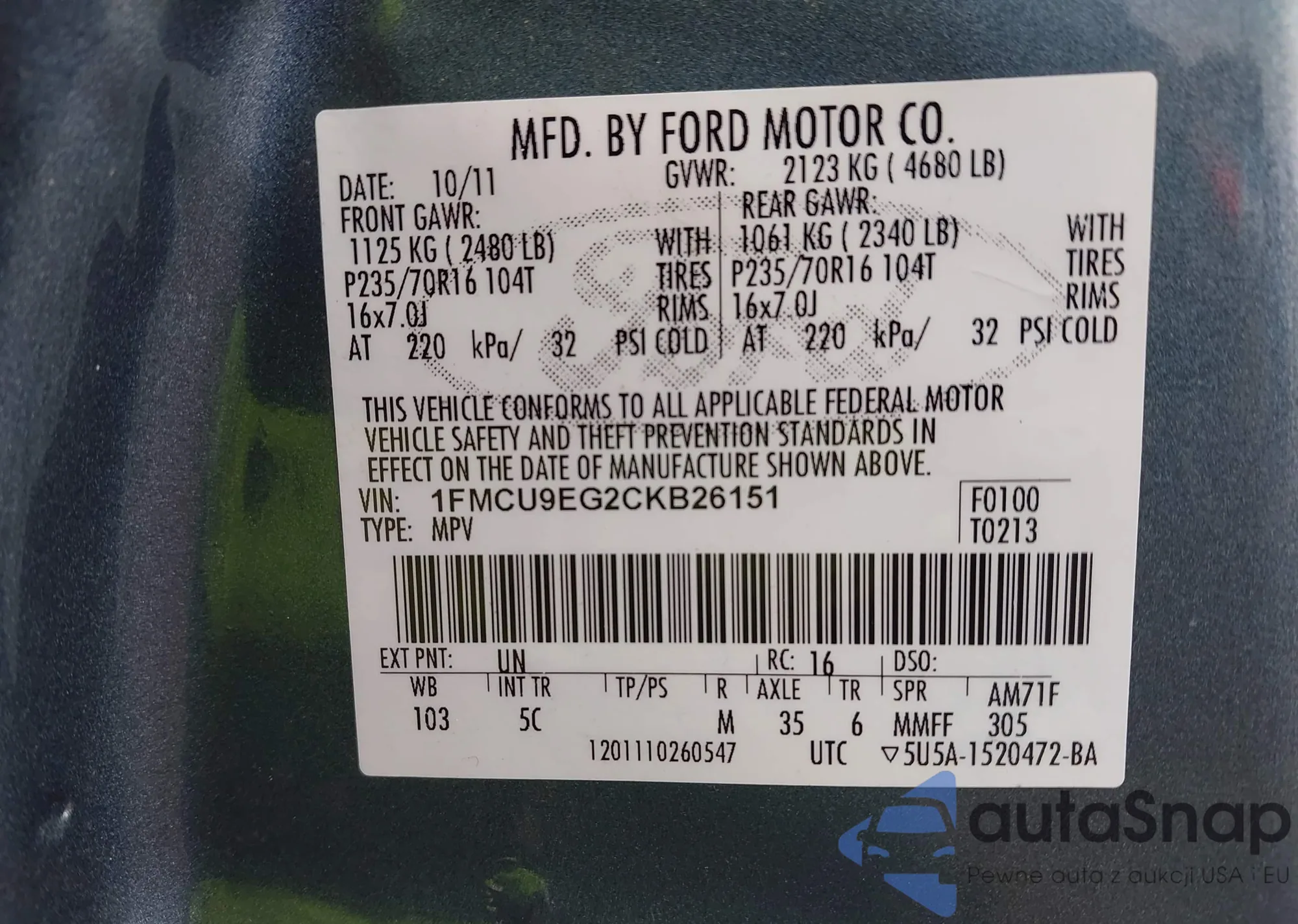 VIN: 1FMCU9EG2CKB26151