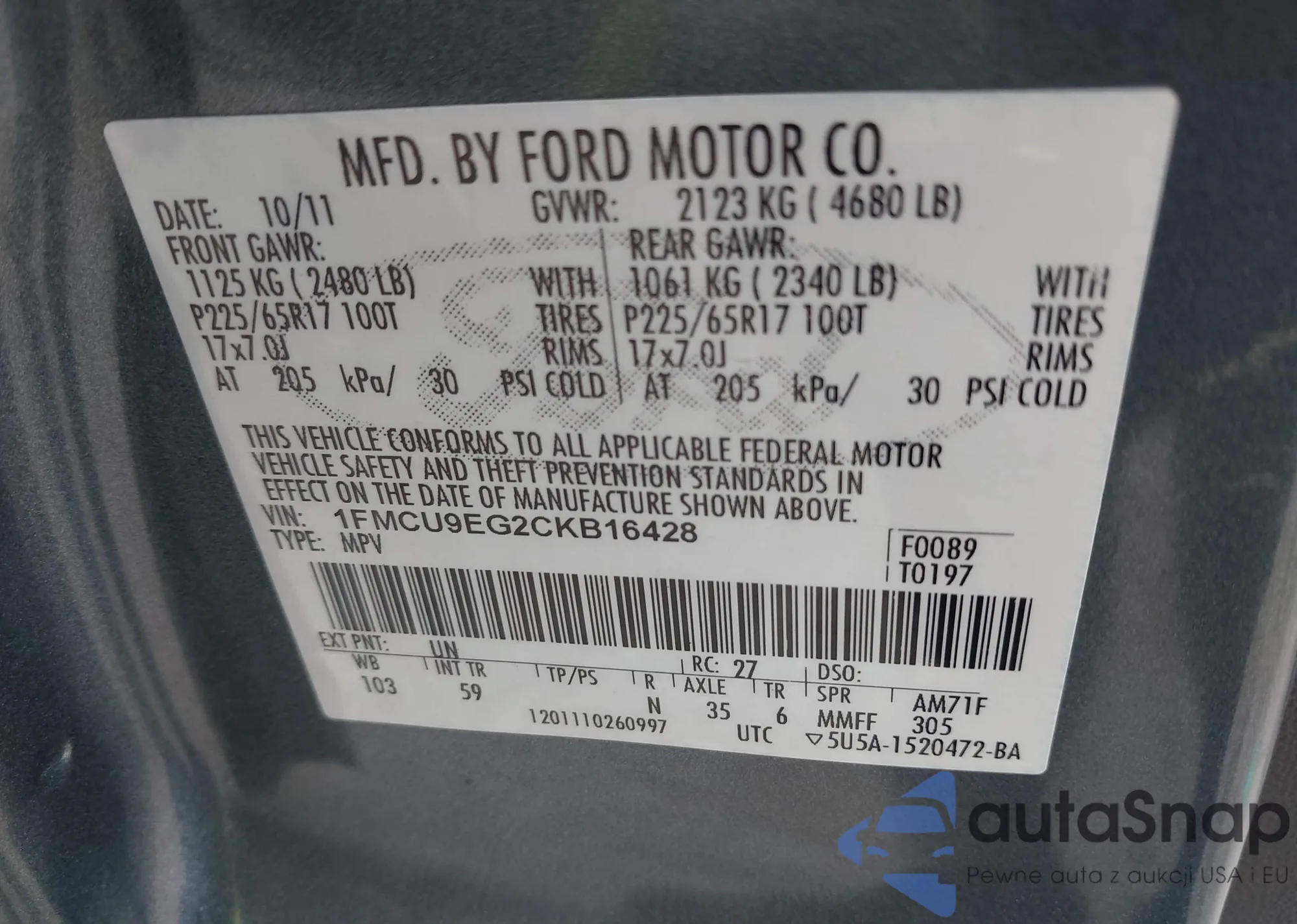 VIN: 1FMCU9EG2CKB16428