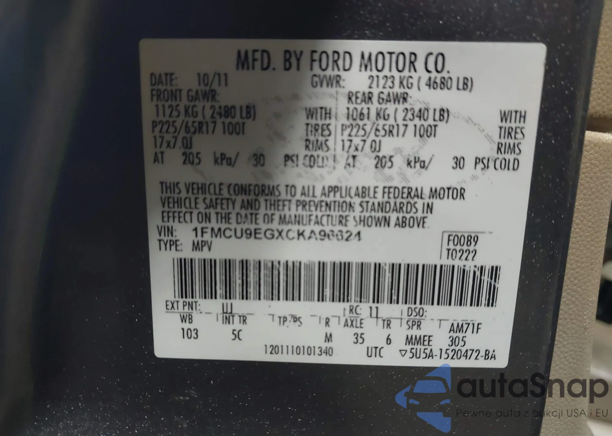 VIN: 1FMCU9EGXCKA96624