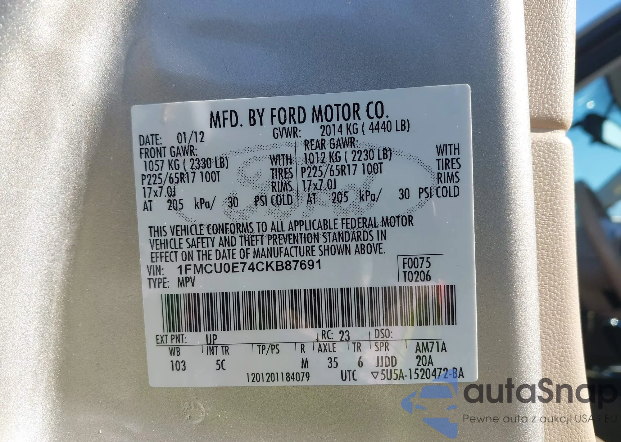 • VIN: 1FMCU0E74CKB87691