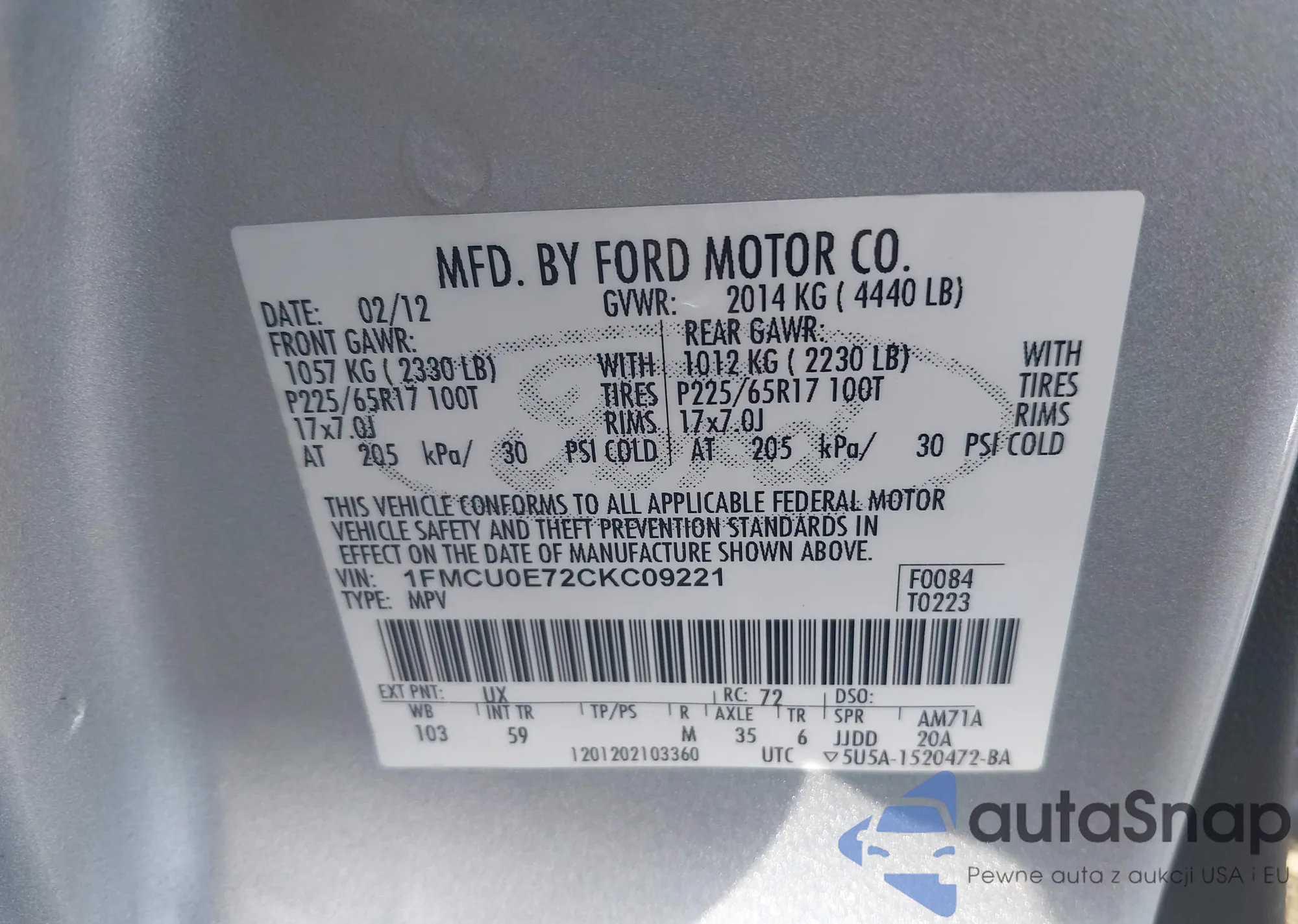VIN: 1FMCU0E72CKC09221