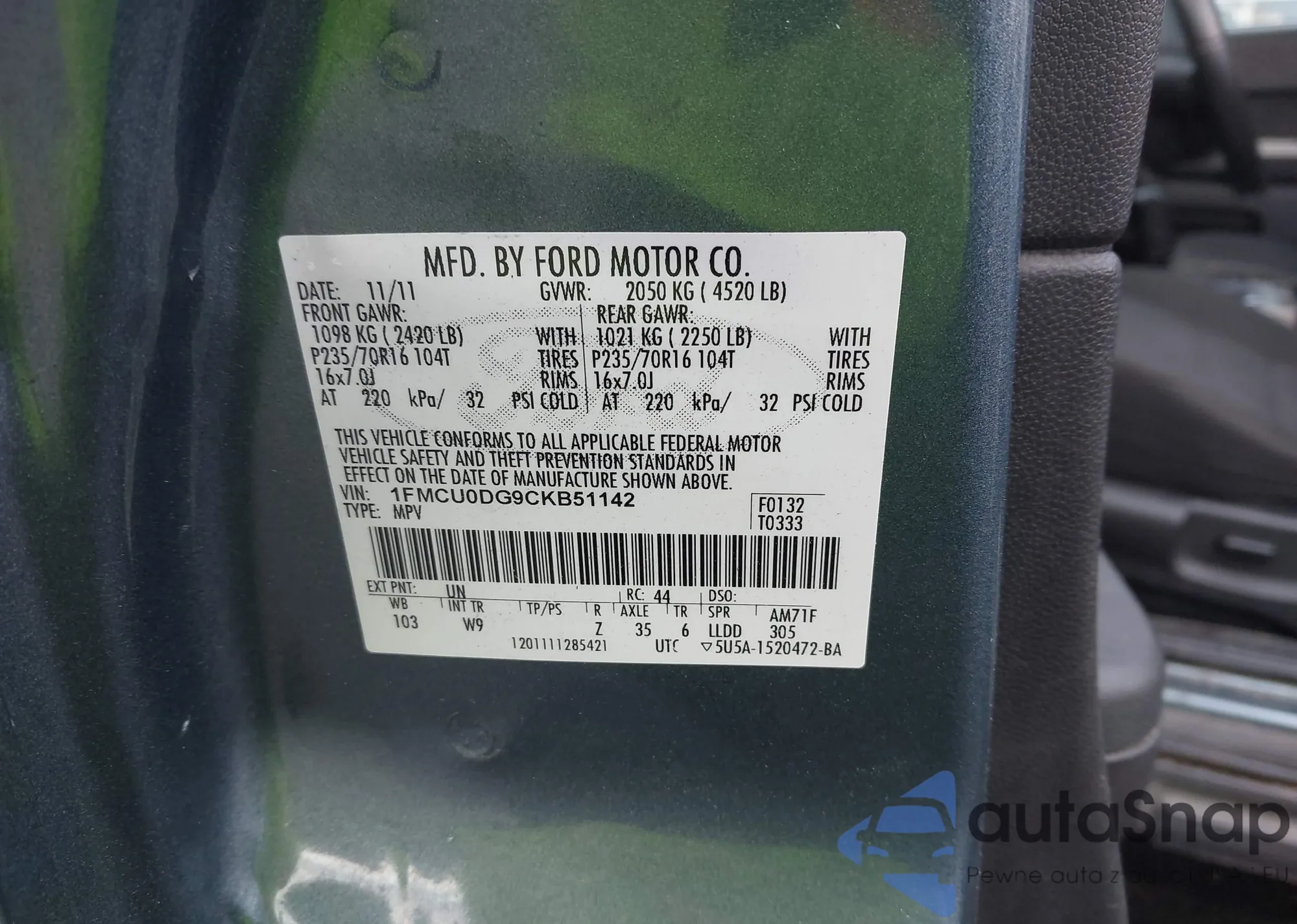 VIN: 1FMCU0DG9CKB51142