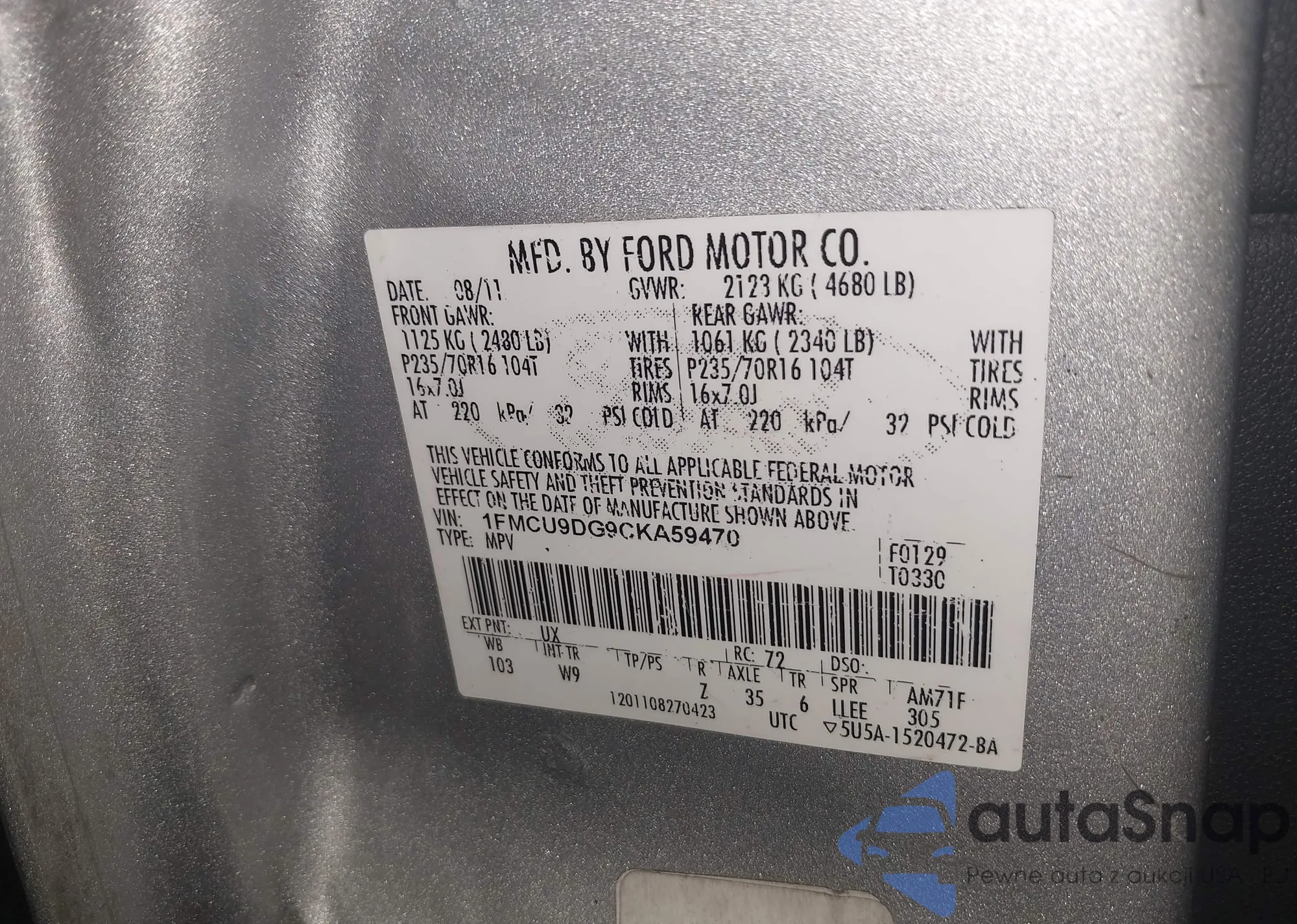 VIN: 1FMCU9DG9CKA59470