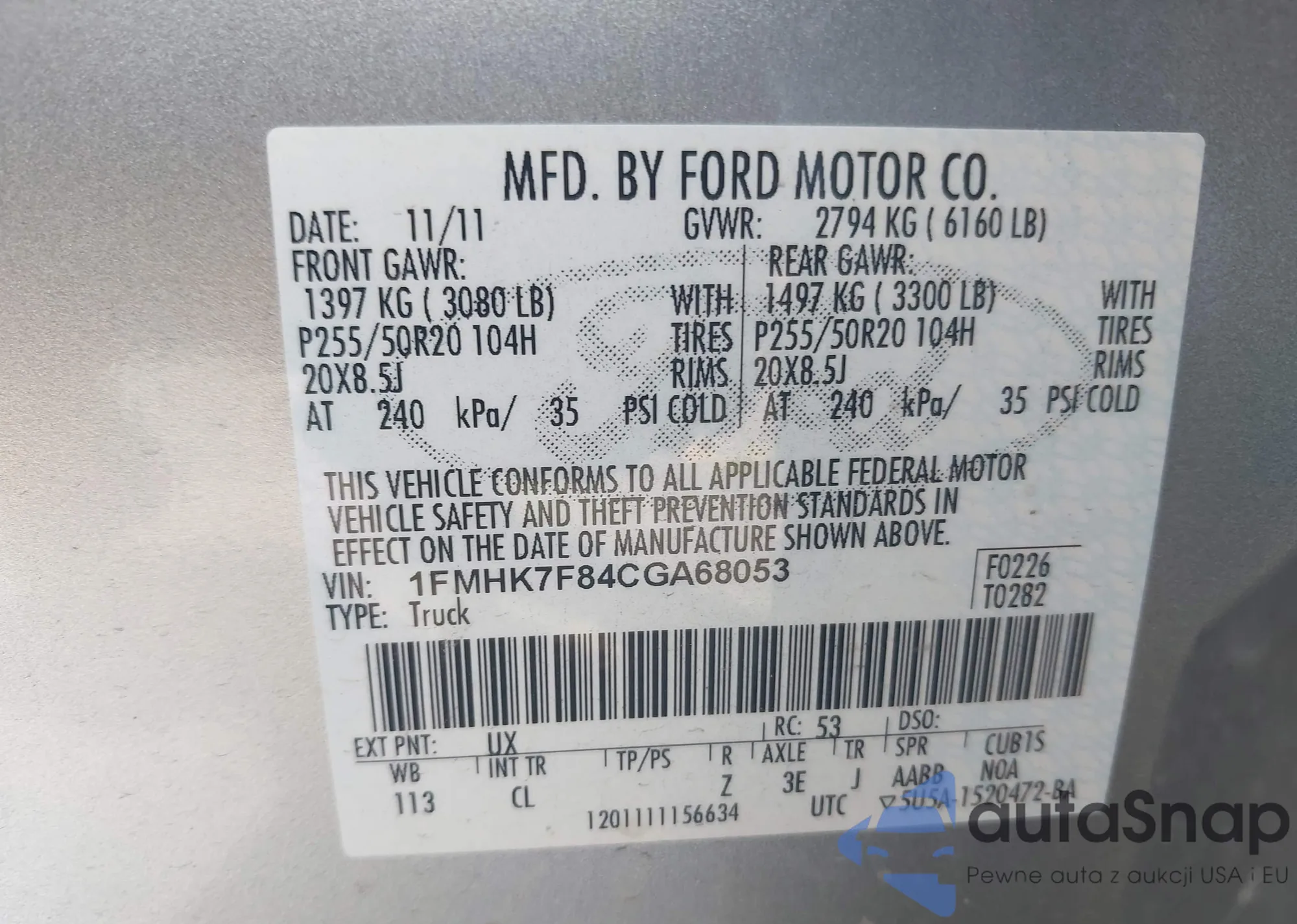 VIN: 1FMHK7F84CGA68053