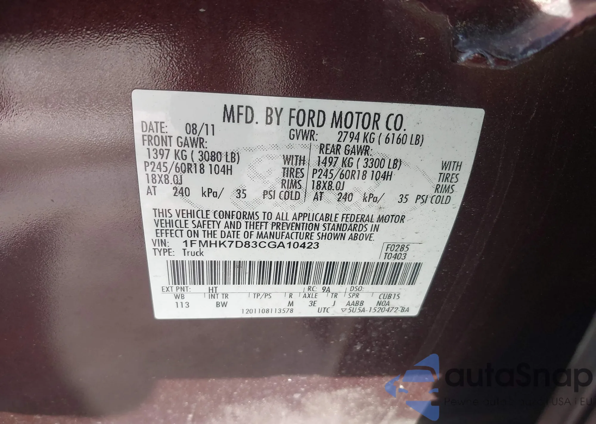 VIN: 1FMHK7D83CGA10423