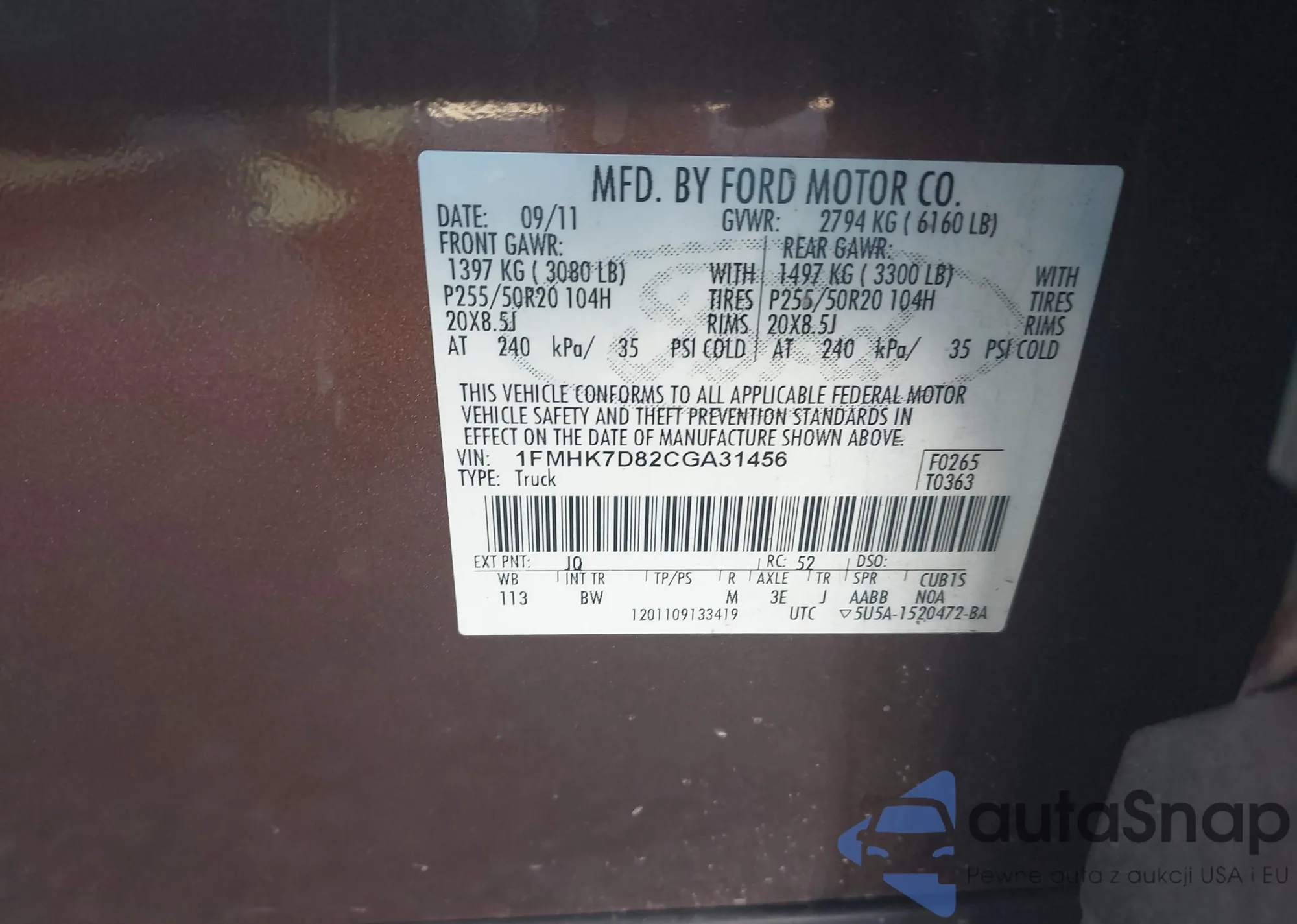 VIN: 1FMHK7D82CGA31456