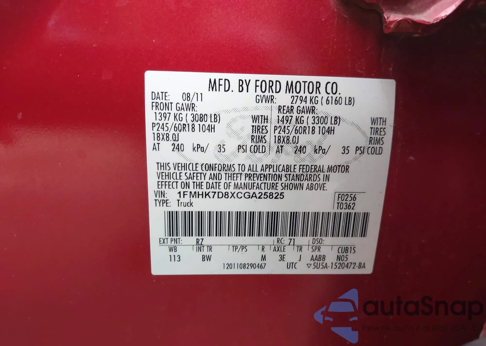 VIN: 1FMHK7D8XCGA25825