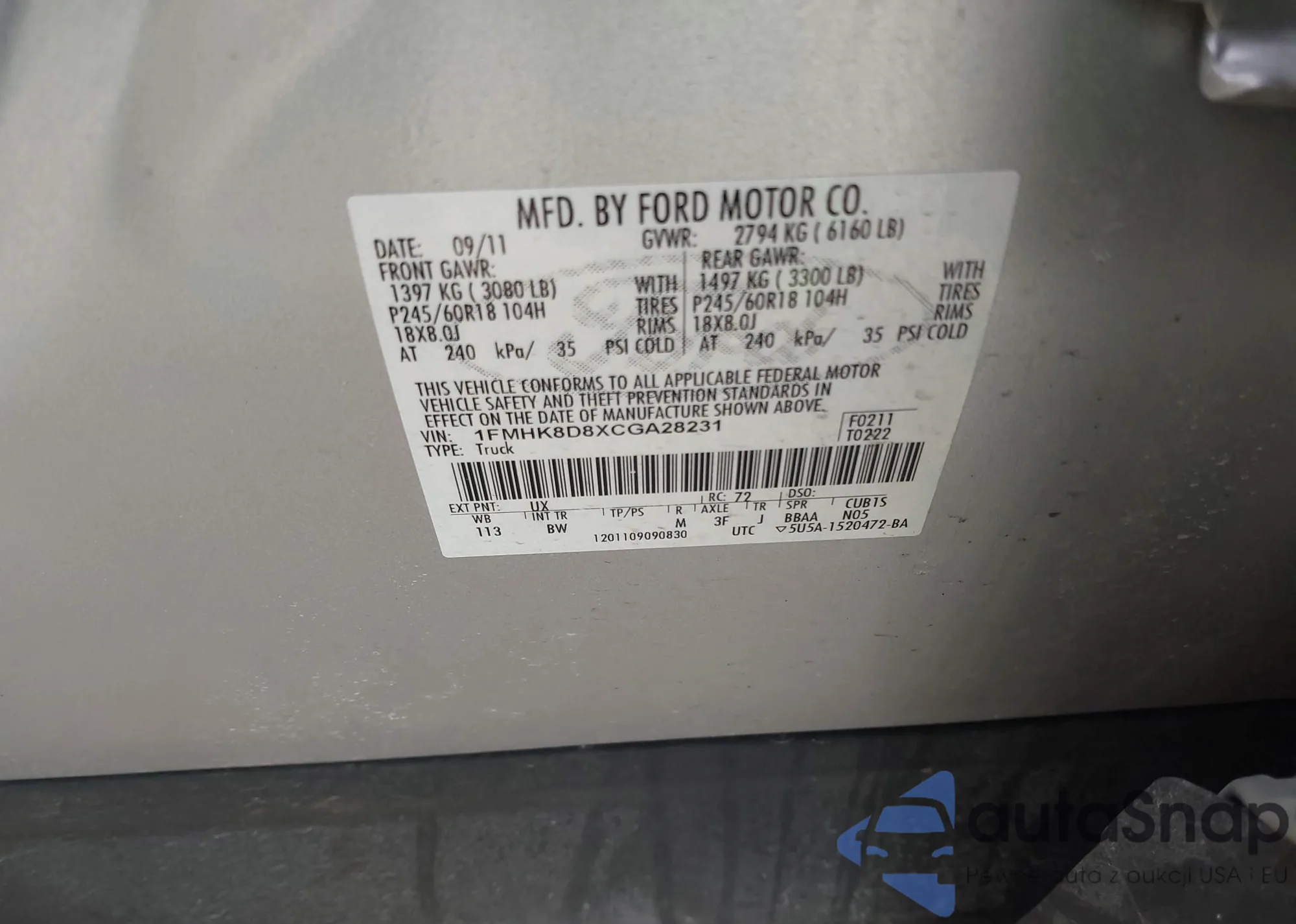 VIN: 1FMHK8D8XCGA28231