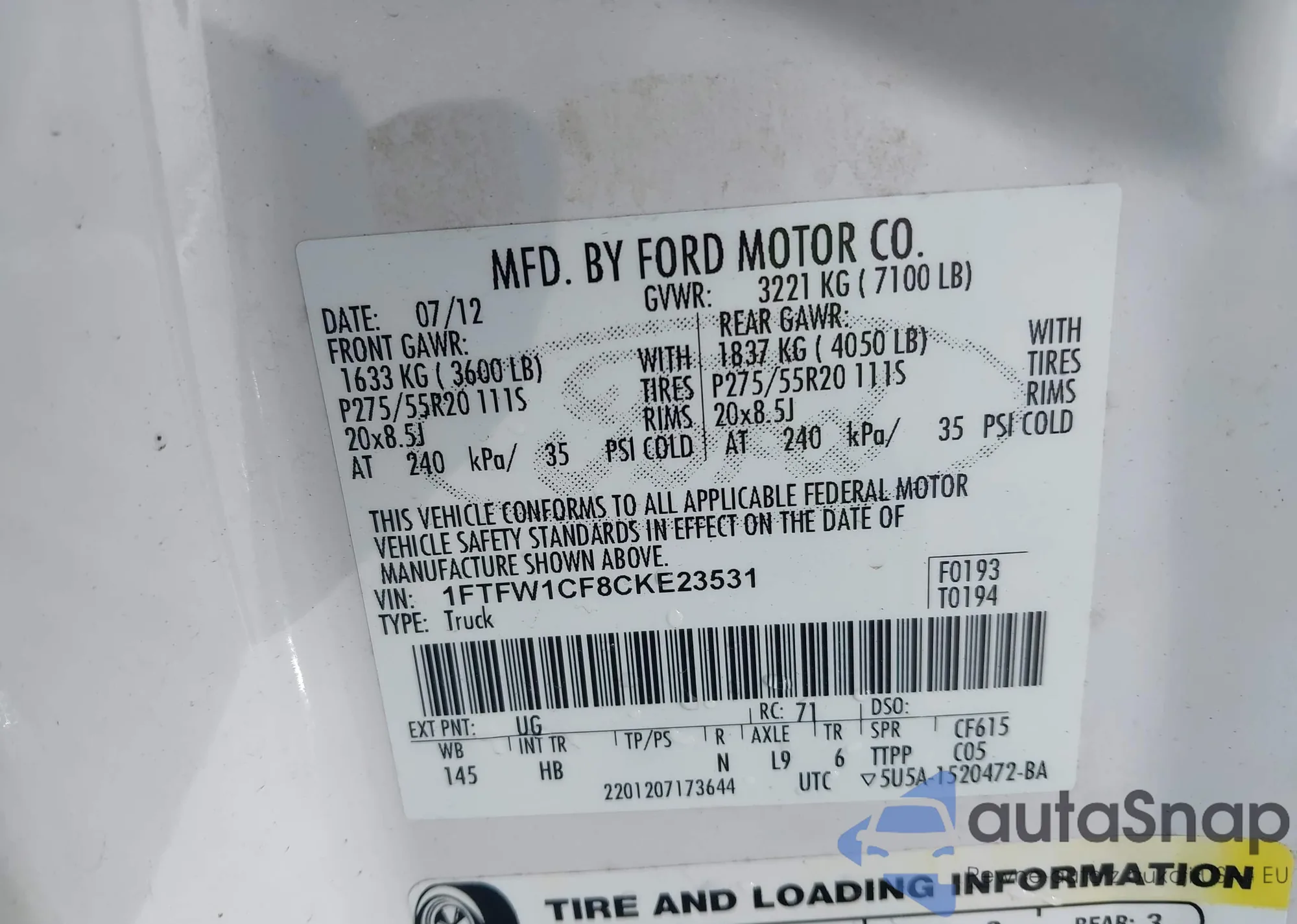 VIN: 1FTFW1CF8CKE23531