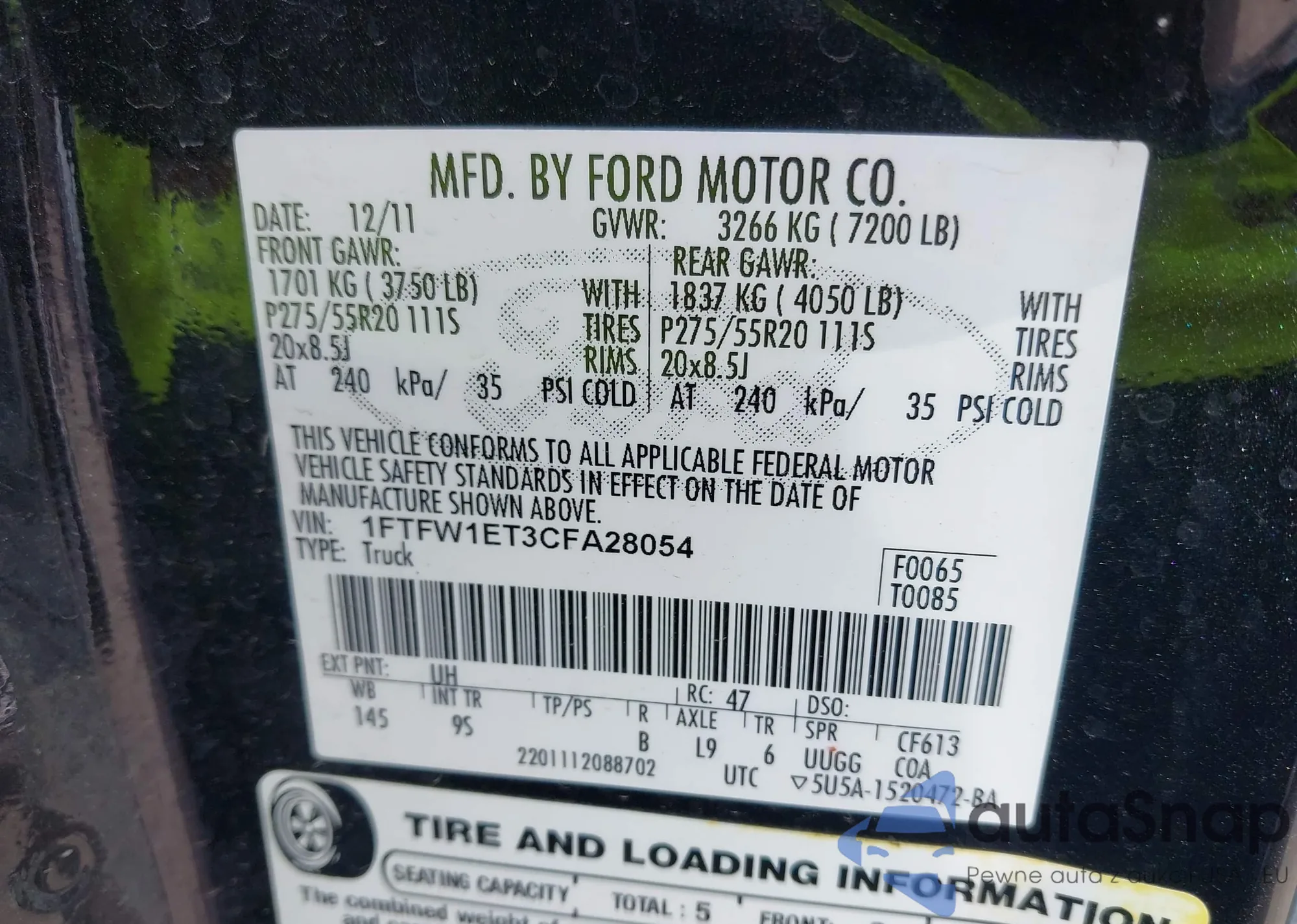VIN: 1FTFW1ET3CFA28054