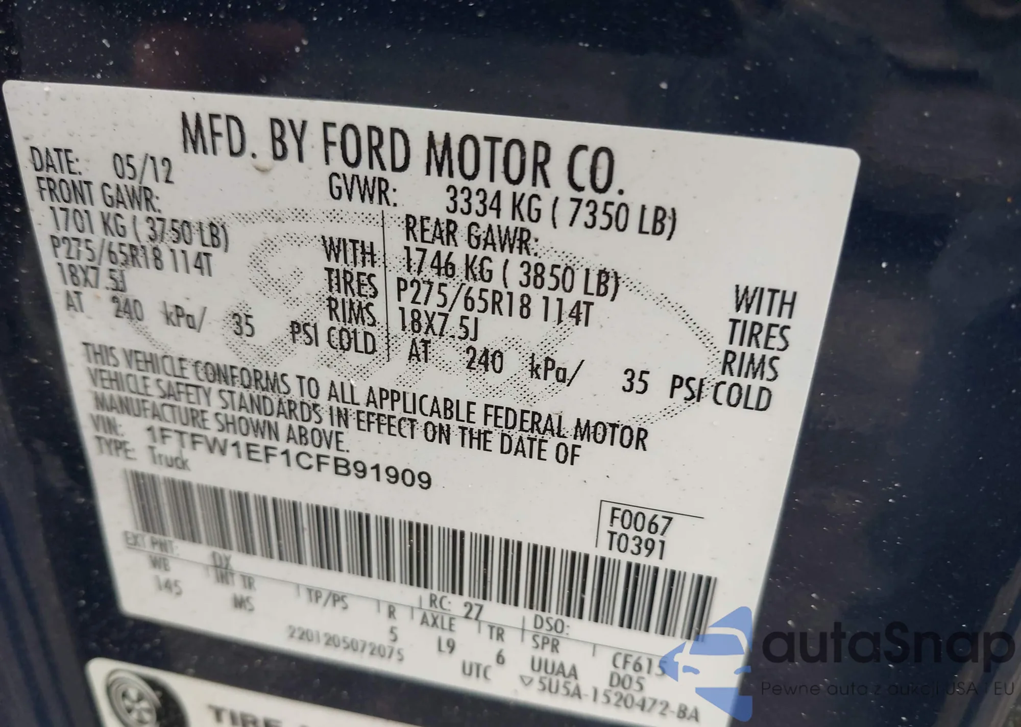 VIN: 1FTFW1EF1CFB91909